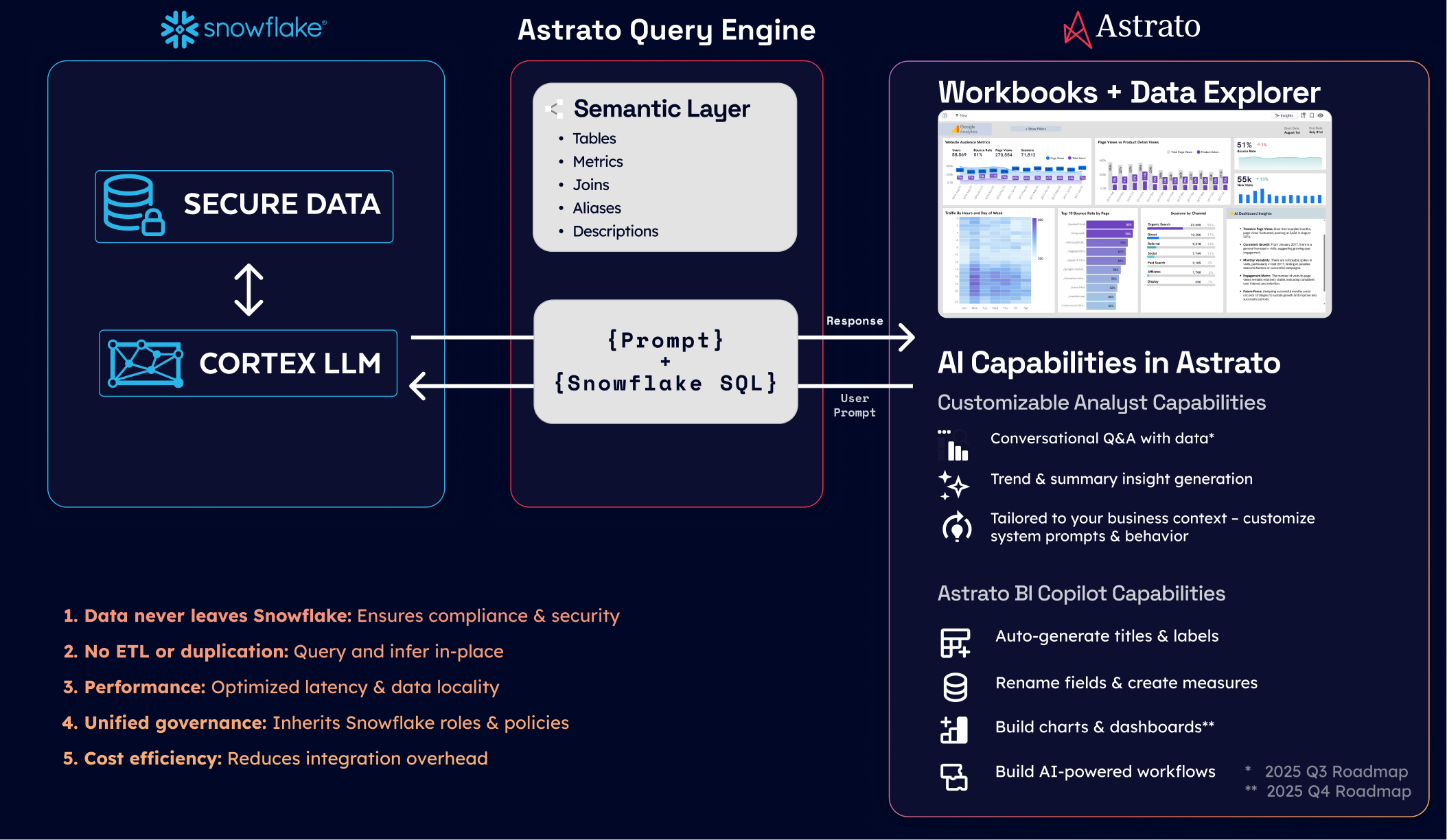 AI is built in and grounded in a visual semantic layer, so every suggestion aligns with your business logic, giving users the speed of automation with the safety of governance.