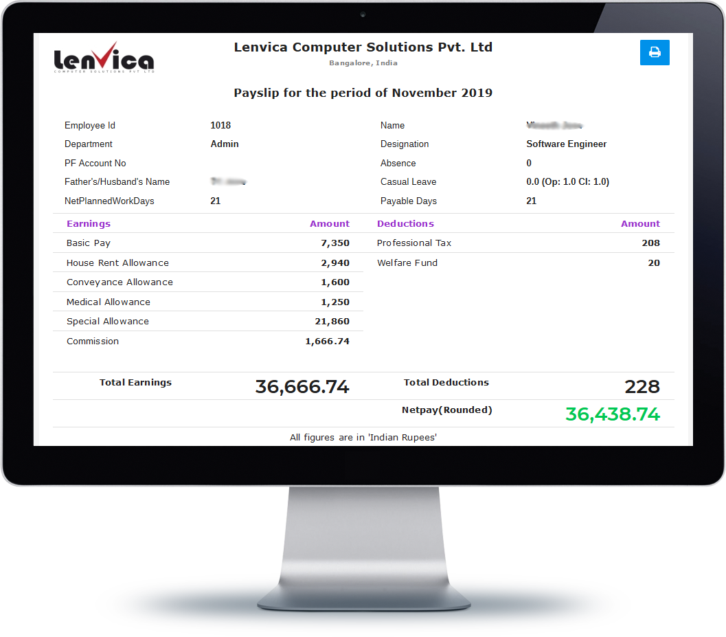 Create your own payroll heads, specify your own formulae, and organize into multiple payroll structures. The flexibility and power of the payroll software allows you to be fully in control.
