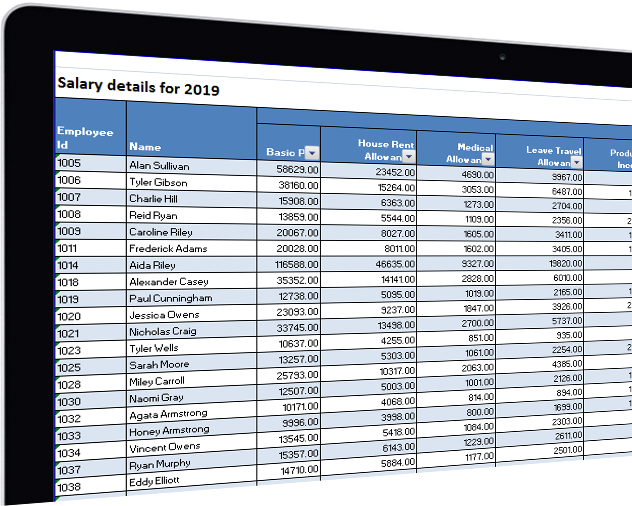 Migrate payroll data from excel or other software with ease. Excel import allows you to import bulk amounts of data in almost no time. Similarity with excel enables easy configuration of payroll.