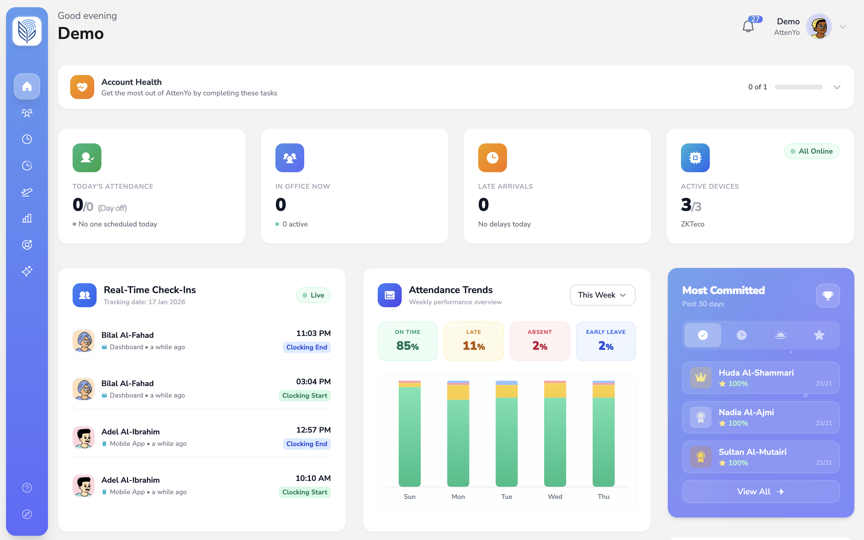 Attenyo is an AI-powered attendance tracking software designed for small and mid-sized businesses in the Middle