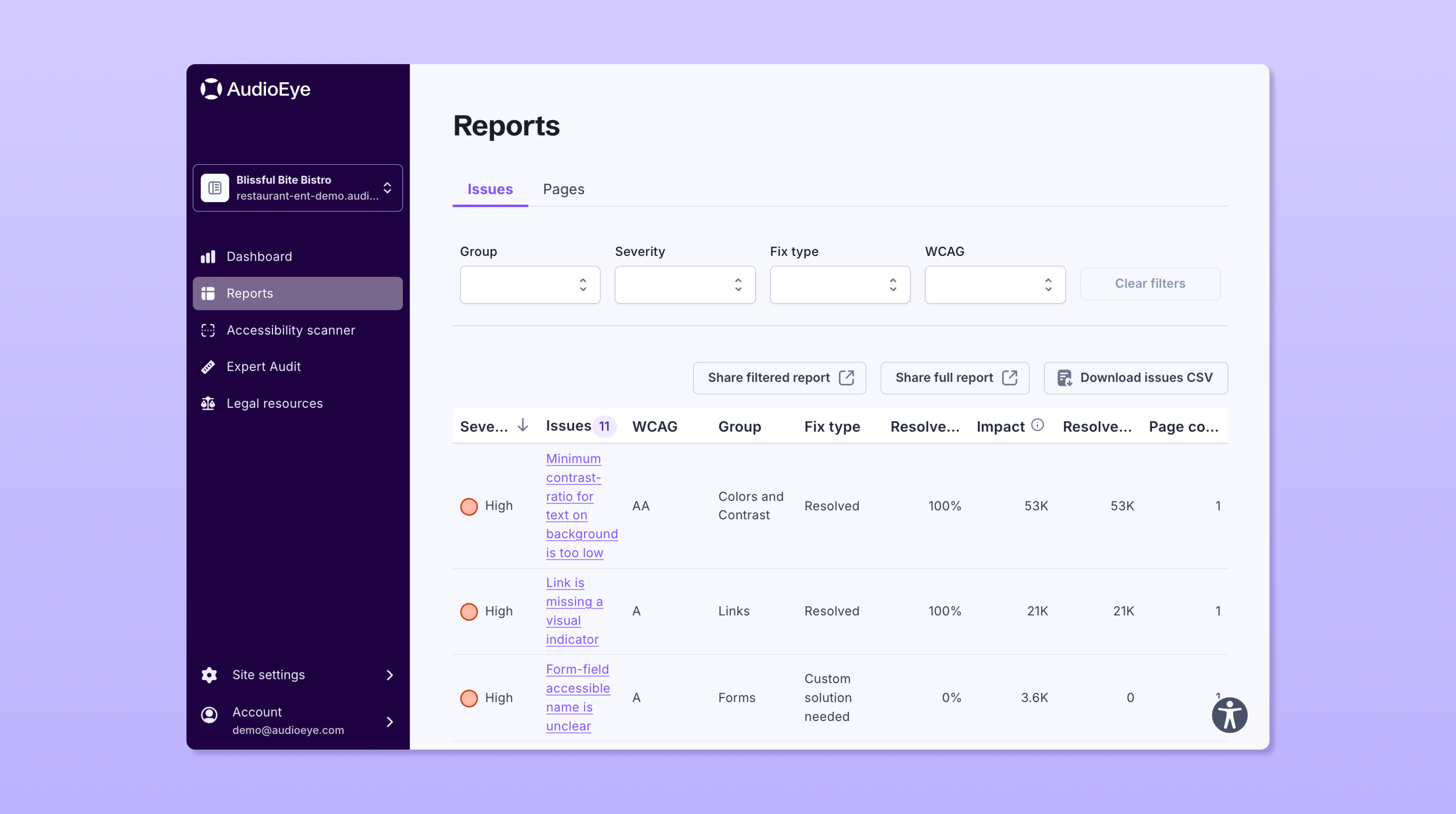 What I appreciate about AudioEye is that it goes beyond being just a website tool. It offers access to a team of human experts who can review your site and make necessary modifications to address accessibility issues. The platform is also very straightforward to implement and use, and the customer support is outstanding. Review collected by and hosted on G2.com.