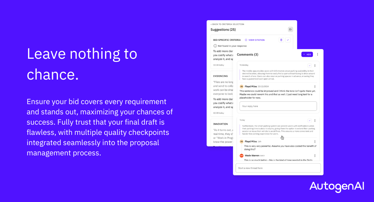 It’s also great to see that AutogenAI is helping you simulate and strengthen the review process before final drafts are shared internally. That balance of compliance, accuracy, and human control is exactly what we’re aiming for.