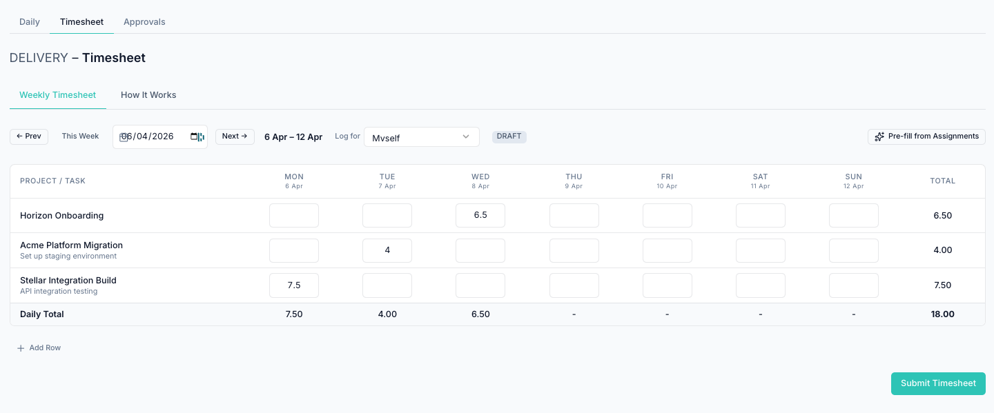 * AI-powered Time Tracking: Accurately capture employee time for projects, clients, and internal work through intelligent, AI-enabled timesheets. Reduce manual effort and eliminate missed billable or payroll hours.