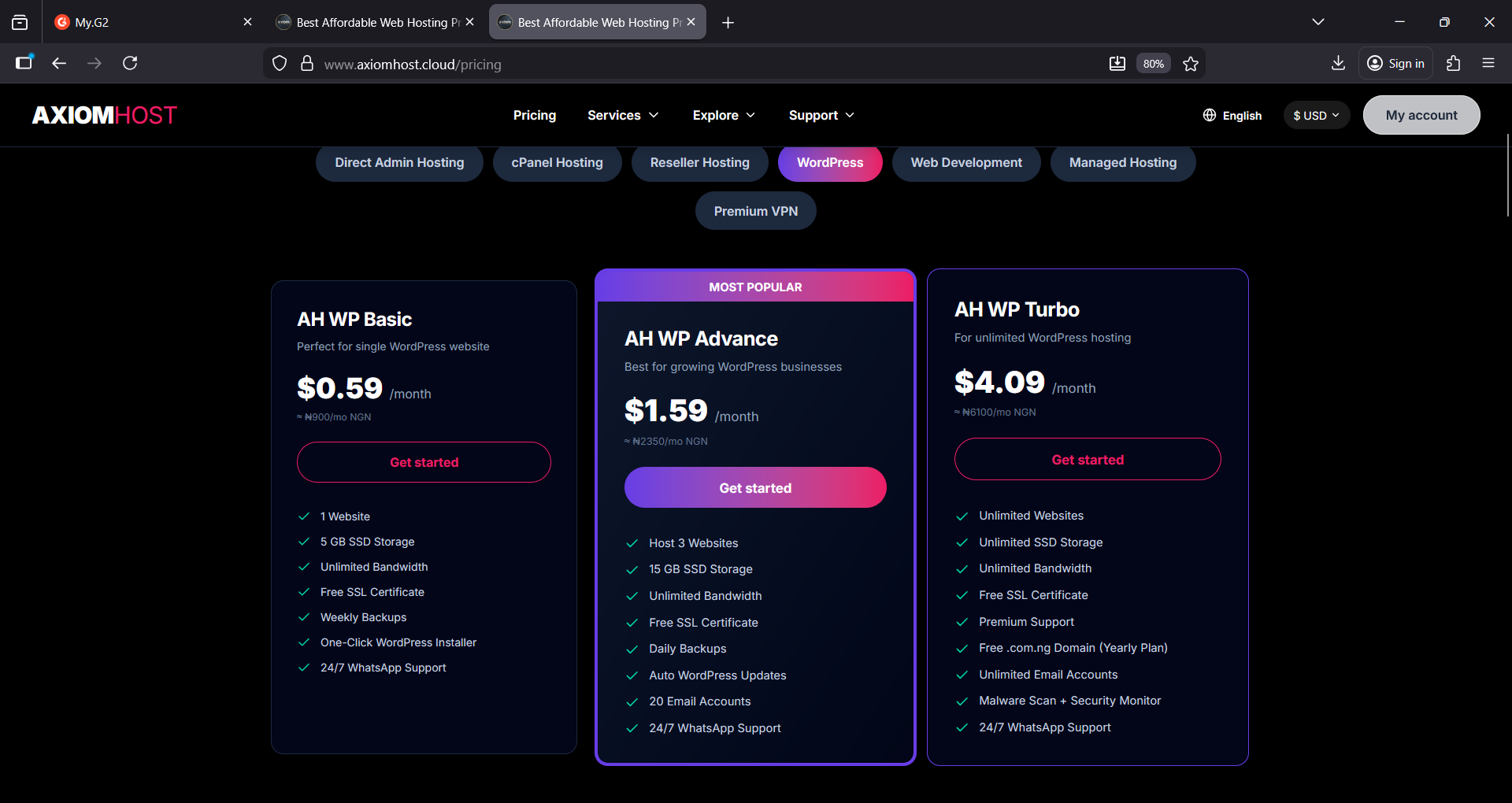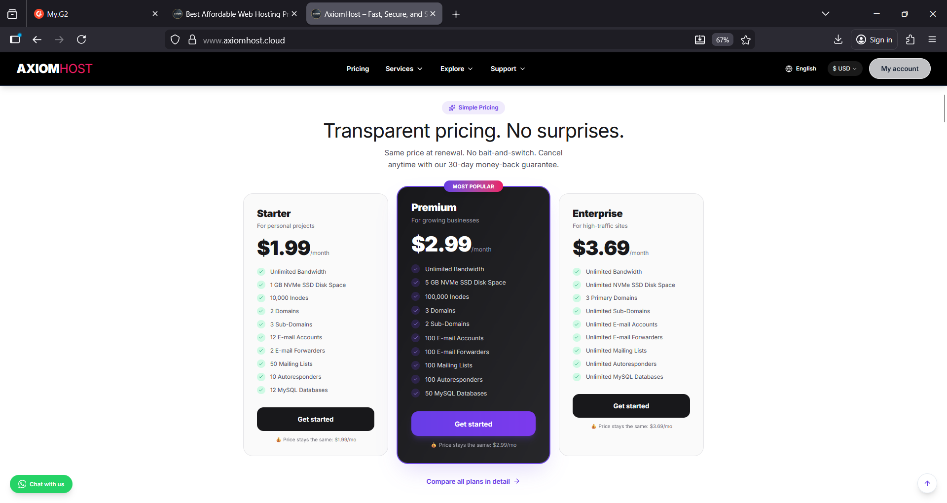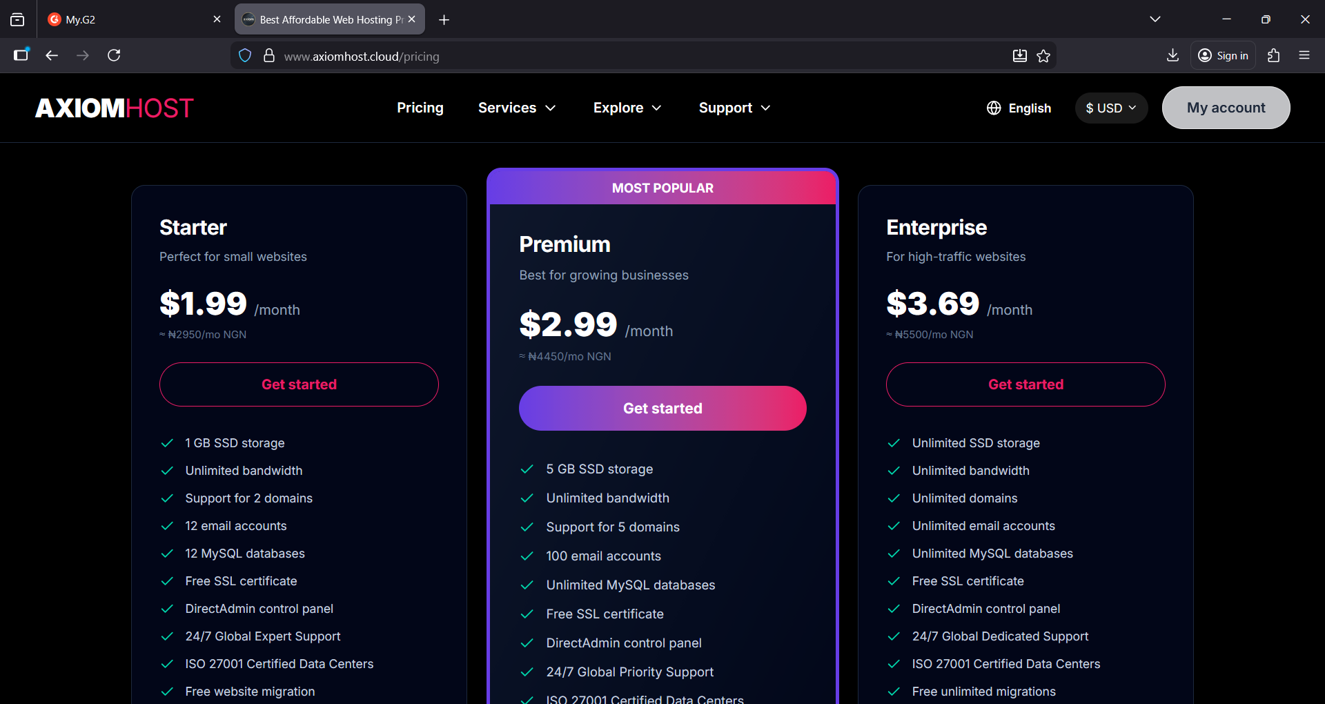Pricing provided by AxiomHost.