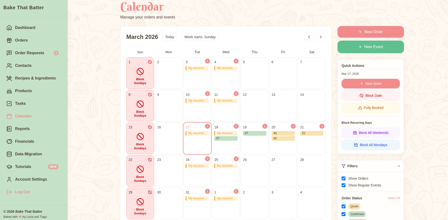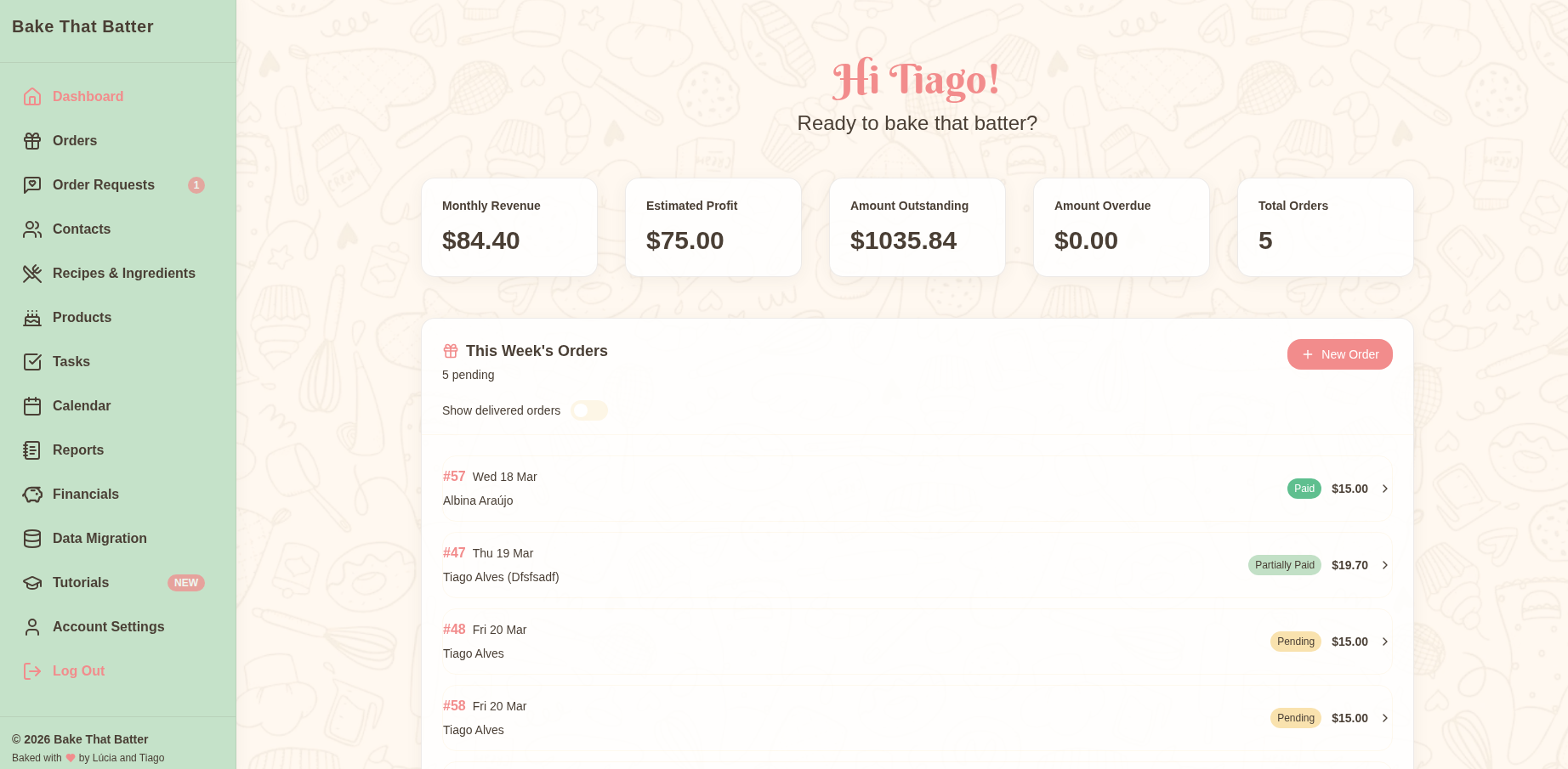 CakeBoss is your business's best friend. From order management, to invoicing, to scheduling, to costing out recipes and fairly pricing your goods, CakeBoss handles it all.