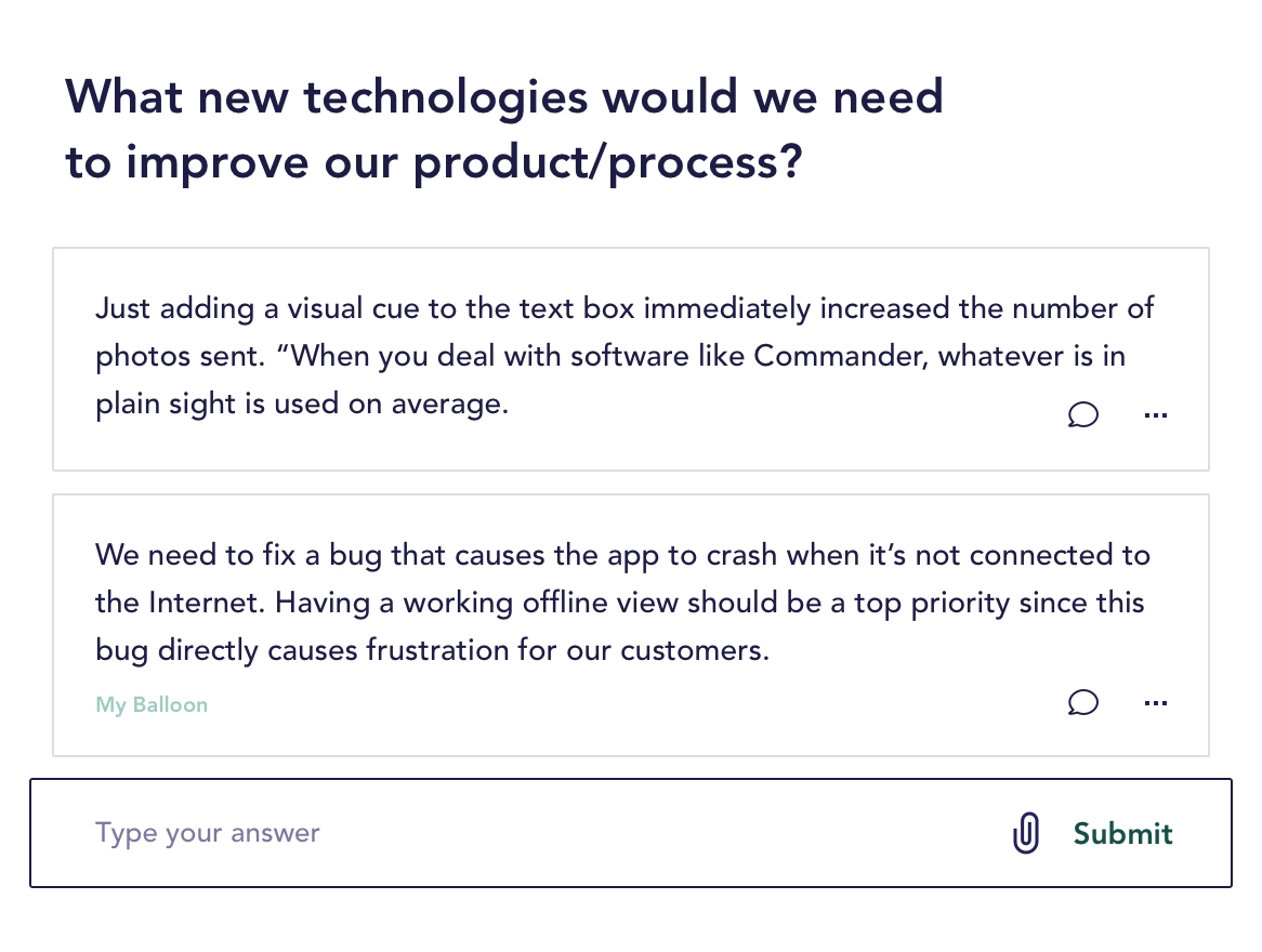 The "pumping up" of each other's ideas allows better insights on employee sentiment (vs surveys), and the expert-led questions allow better question asking Review collected by and hosted on G2.com.