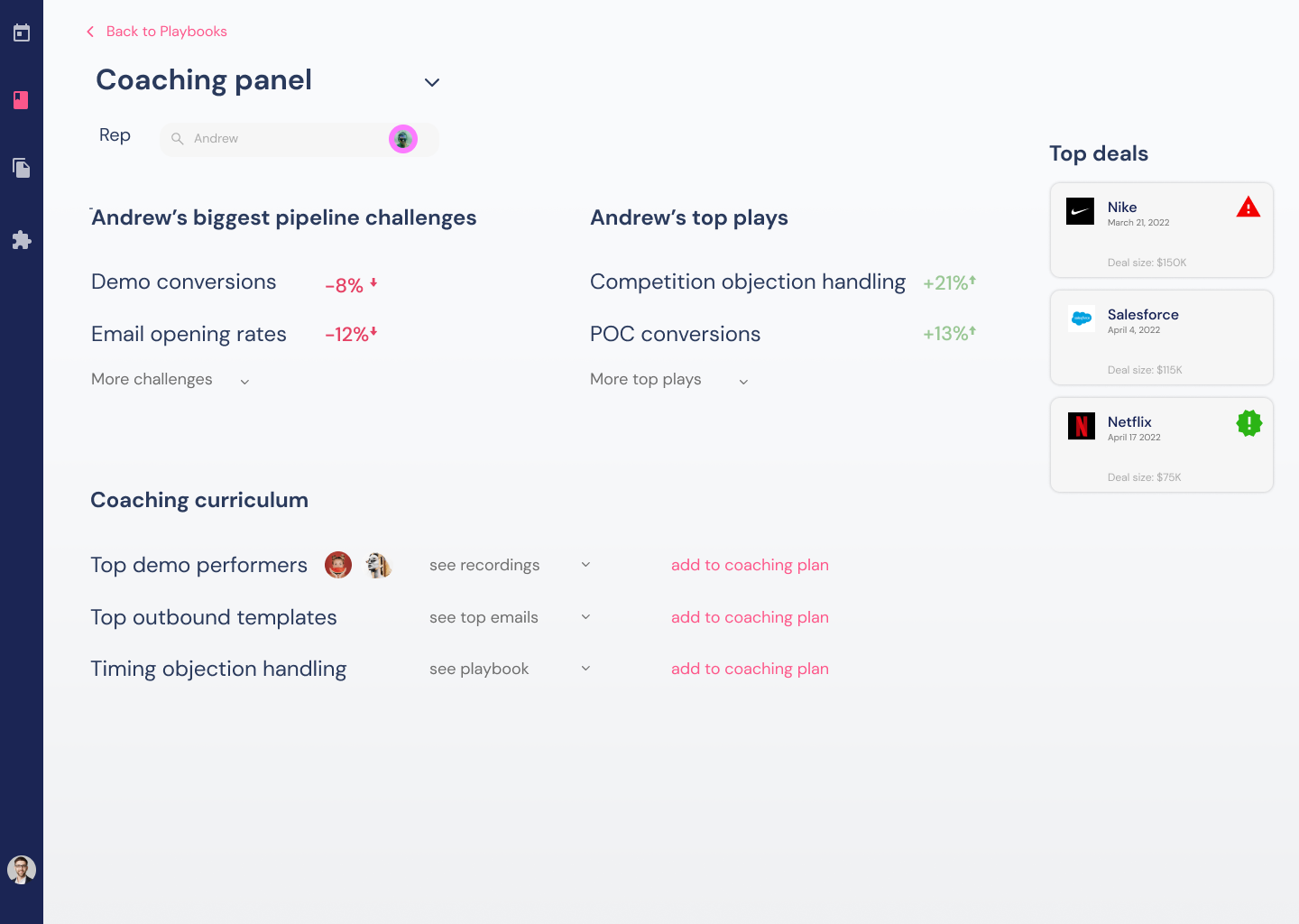 I like that barista AI is the first rep-based pipeline software service with around-the-clock help. They help revenue leaders focus on individual & team performance. Review collected by and hosted on G2.com.