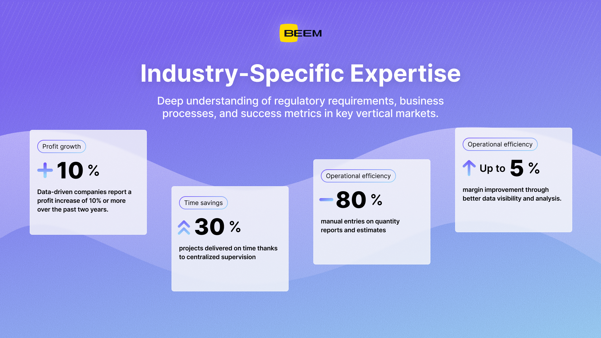BEEM understands that construction companies need different data solutions than healthcare organizations or e-commerce businesses. Our industry-focused approach has helped construction firms reduce estimation errors, healthcare providers maintain HIPAA compliance while improving patient outcomes, and growing businesses increase profitability by 10% through better data visibility.