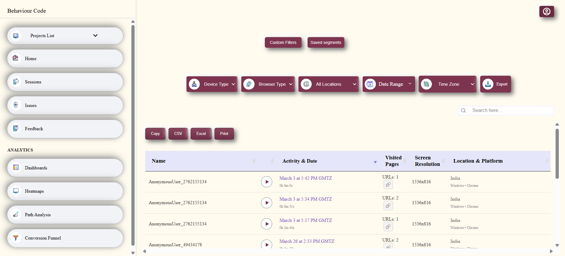 With more than 190,000 happy clients, Mouseflow is the behavior analytics platform of choice for digital marketers, Product & UX professionals on startups and enterprises across the world. Mouseflow lets you record all your website visits, not a fraction of them. It also allows you to instantly-build 6 types of heatmaps on all your pages, analyze funnels, forms, launch feedback campaigns and much more.