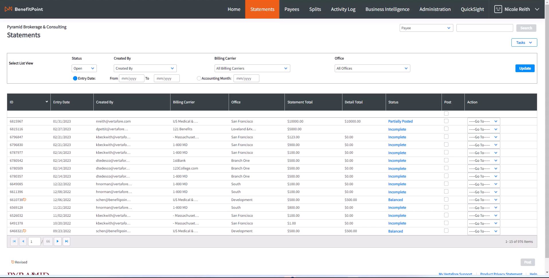 Financial reconciliation: Benefits agencies use BenefitPoint to ensure financial accuracy by aligning estimated commission revenue with actual payments received. This process identifies and mitigates potential financial risks and provides precise financial tracking. With Revenue Tracking and Reconciliation, users can identify lost revenue by matching carrier statements with an estimated revenue. BenefitPoint users report uncovering 2-6% of lost commission earnings with this feature.