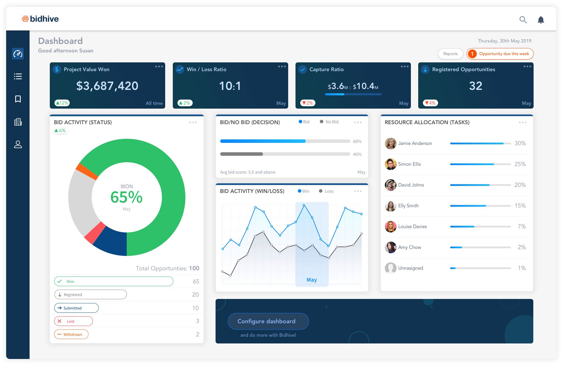 Bidhive’s end-to-end process enables business development teams to enhance their winning performance through improved efficiency and effectiveness of the bid process.