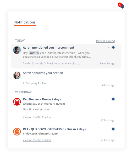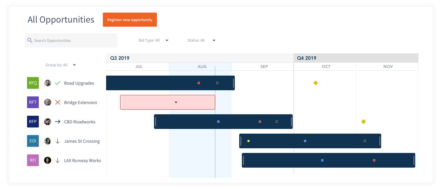 Manage timelines and review milestones in real-time. Bid management never looked this good.
