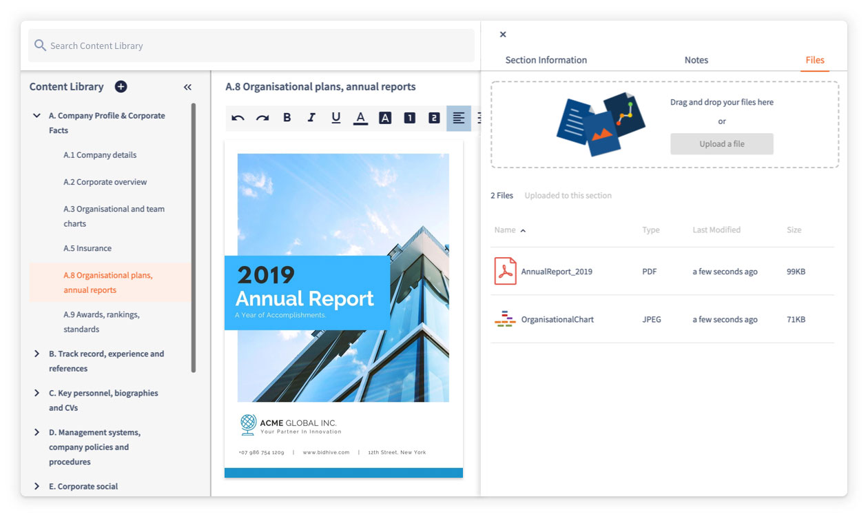 Access on-demand and reusable content in one place Build and leverage a current, central knowledge base of your experience, track record and company-wide information to create quality responses, faster.