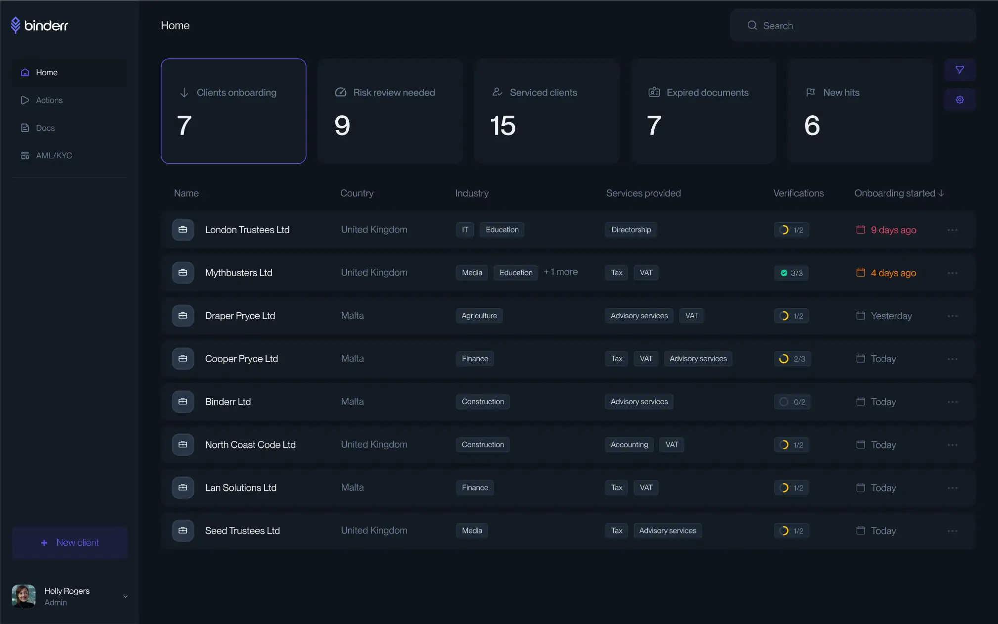 Binderr helped me with KYC and screening users to identidy high risk clients. The most unquie feature that I liked about Binderr is the corporate structure feature that lets identfy UBOs and verify them. It gives me more transparecy about my clients and manage risk more efficiently. Review collected by and hosted on G2.com.