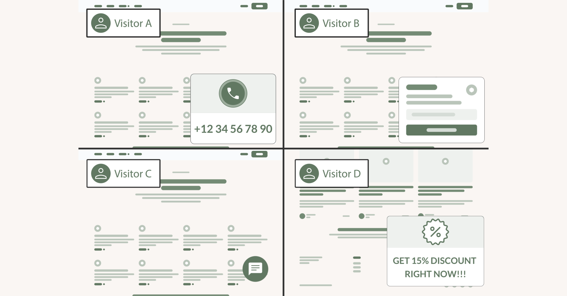 - Personalize contact options and visitor engagements to increase sales and efficient support