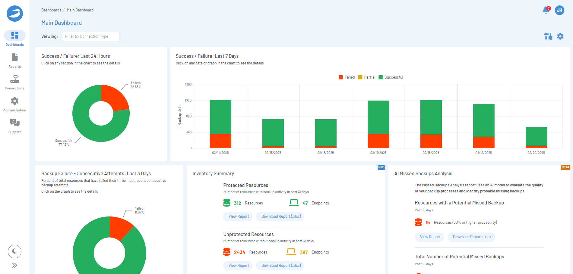 - AI-powered missing backup reporting automatically identifies jobs that should have run but didn’t.