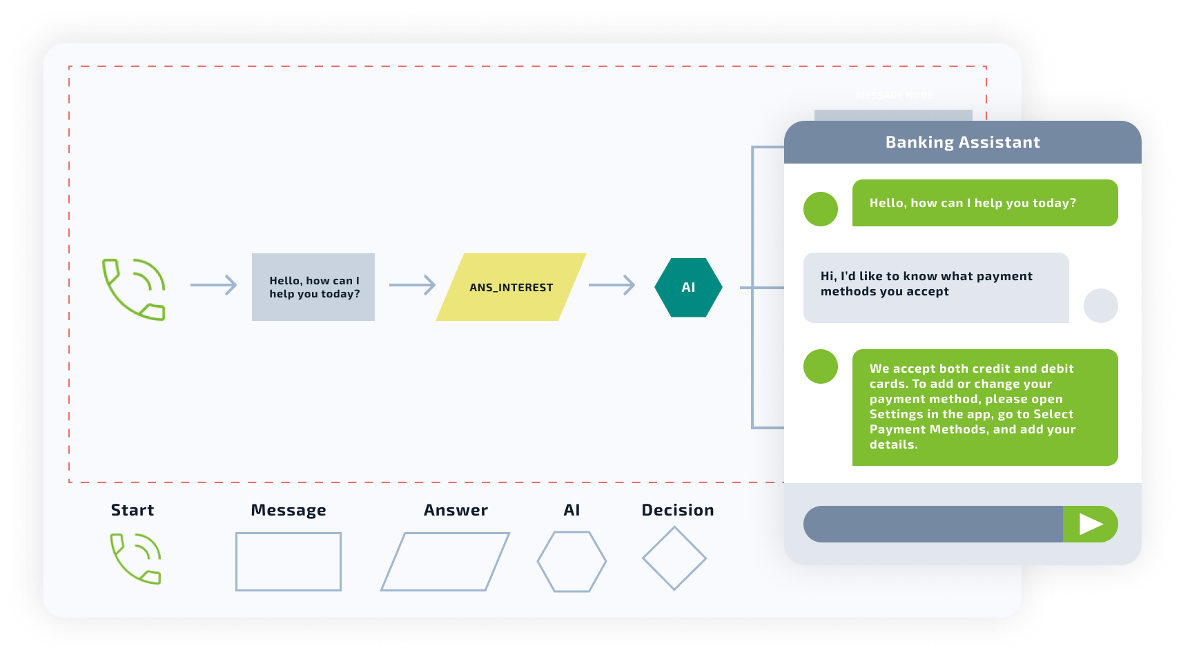Harness the full power of Generative AI to create human-like agents.
