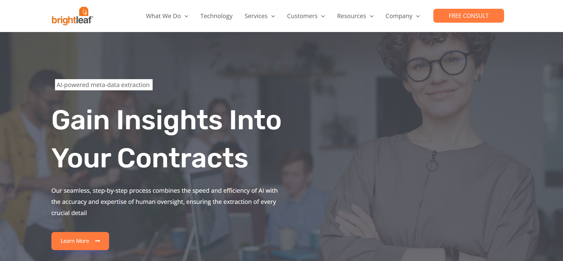 Brightleaf provides a technology powered service to extract information using our own proprietary semantic intelligence/natural language processing technology, our own team of lawyers to check the output, and our own Six-Sigma process to deliver end-to-end, highly accurate, extracted data. Your l...