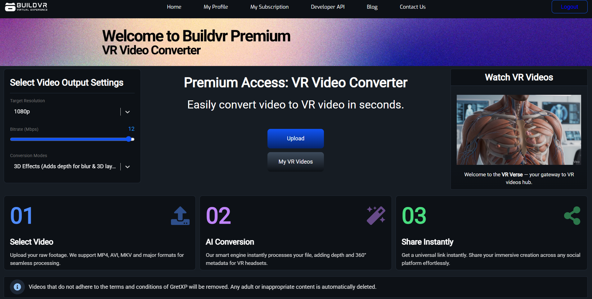AI Spatial Video Engine – https://buildvr.gretxp.com/vr-video