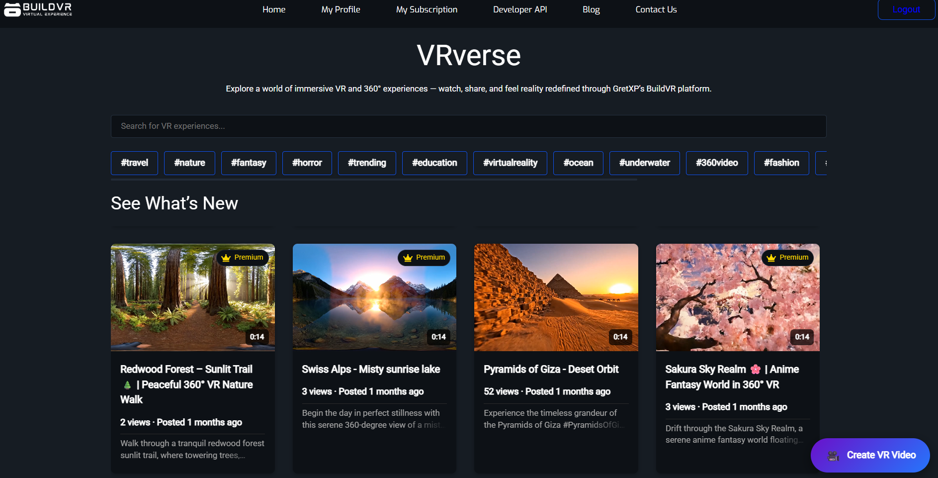VRverse Immersive Streaming Platform – https://buildvr.gretxp.com/vrverse