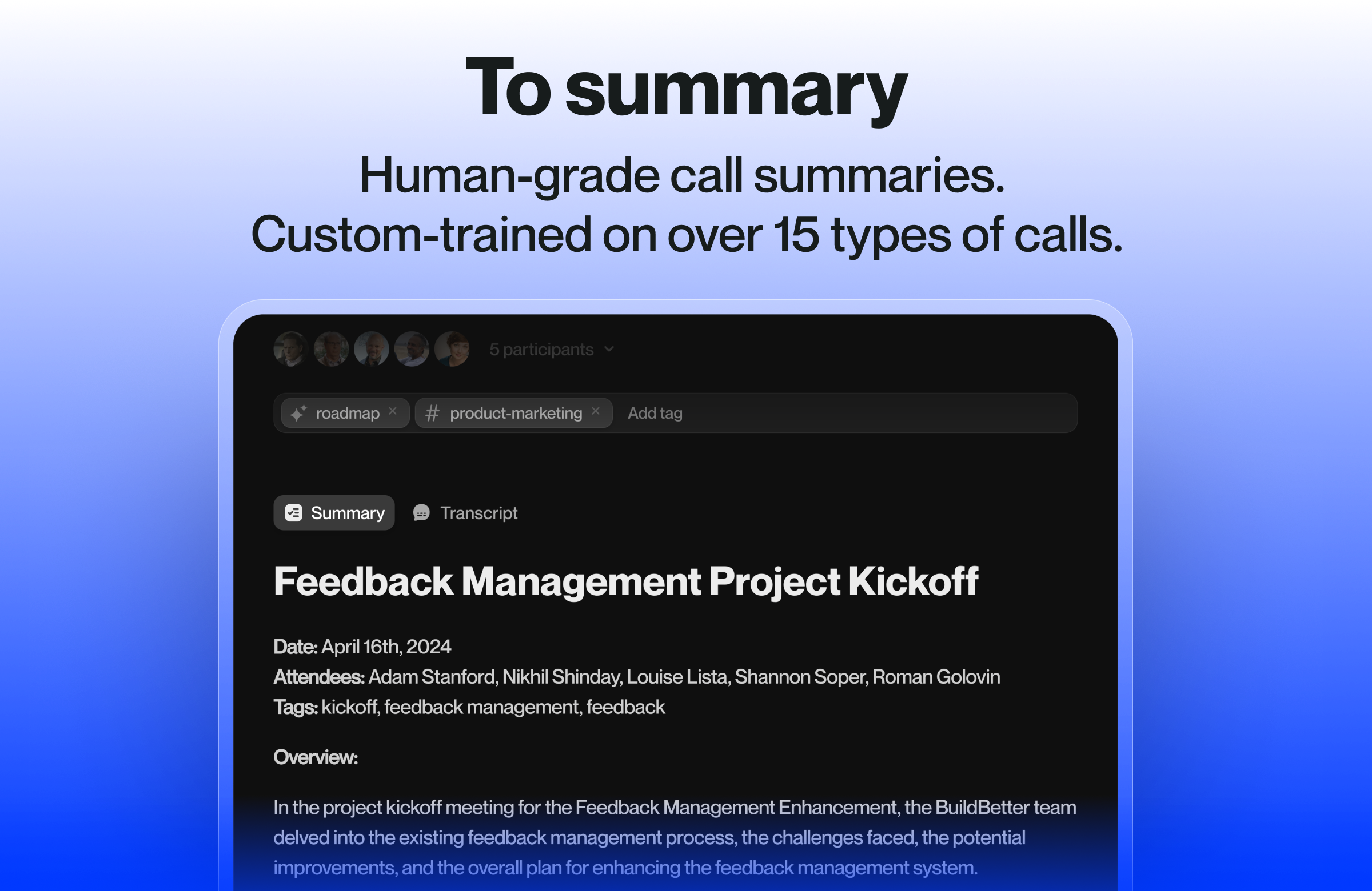 A crucial element for realizing truly transformative AI is the adoption of a versatile strategy that is both easily comprehensible and seamlessly integrable. All stored meetings can be conveniently accessed in one centralized location, simplifying the review process for our company's prospects. Review collected by and hosted on G2.com.