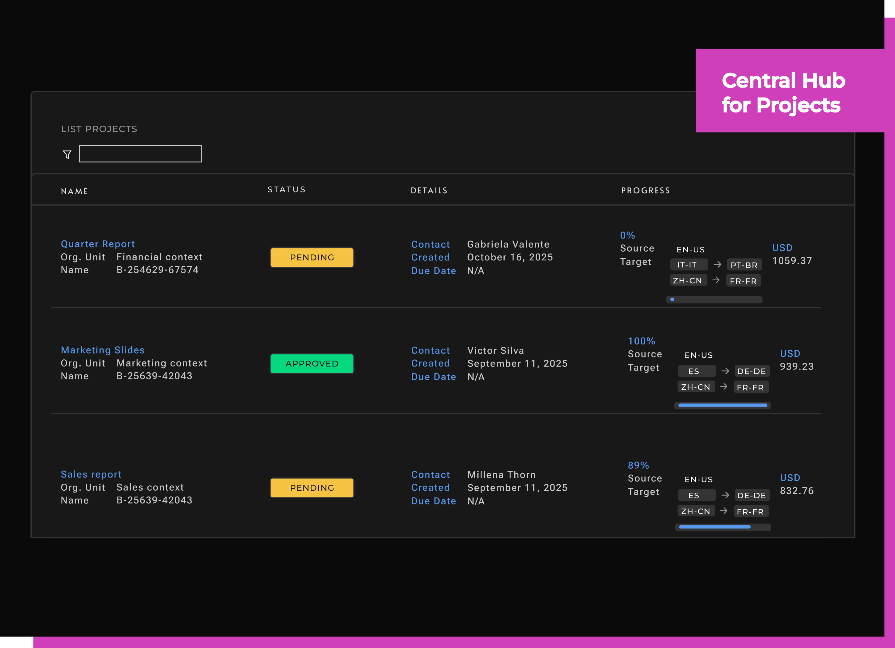 Whether you're translating alongside a digital twin or managing enterprise-level translation programs, Bureau Works minimizes time and effort with automation.