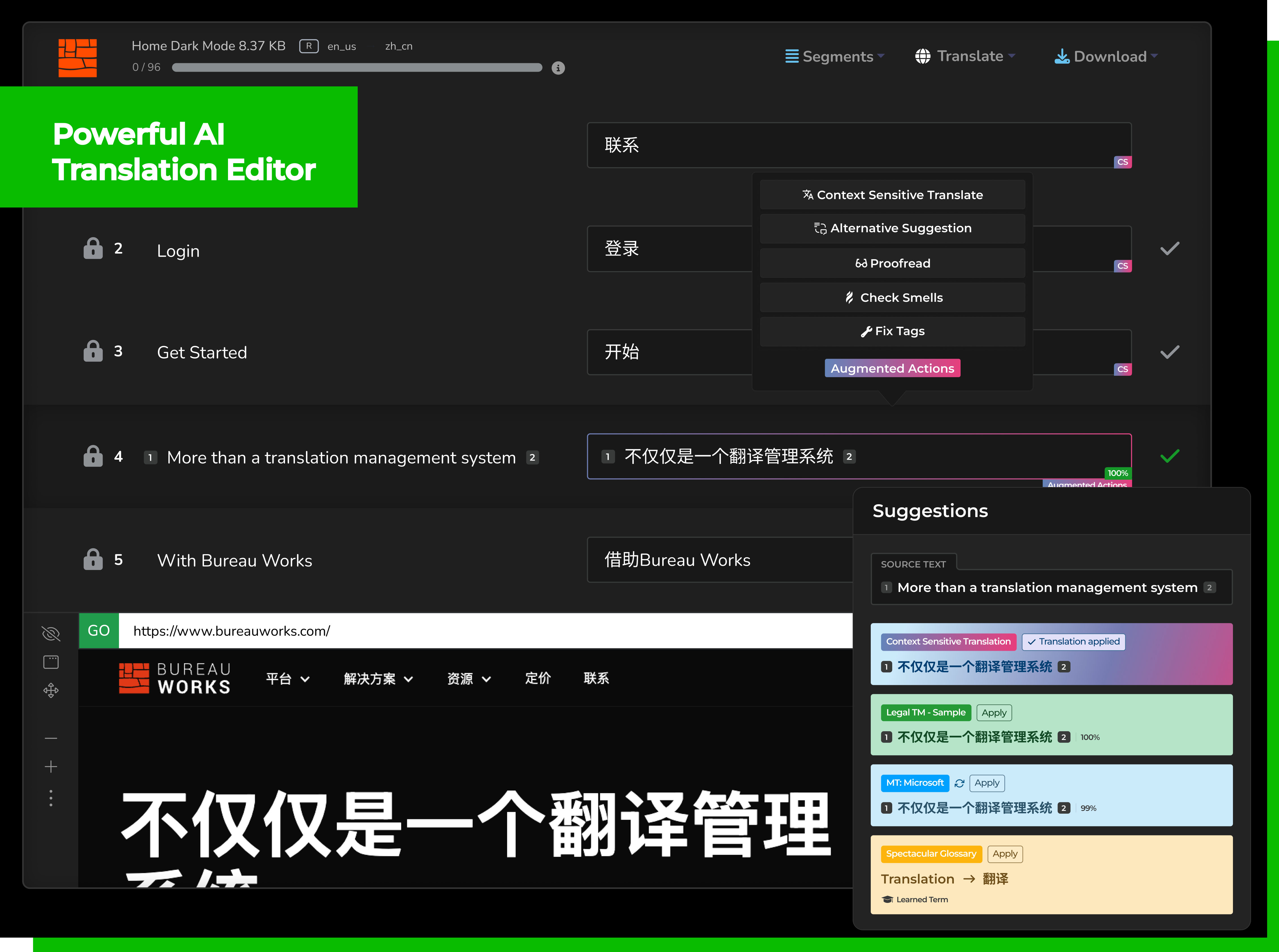 - Augmented Actions: A collection of features intelligently powered by LLM to enhance your translations.