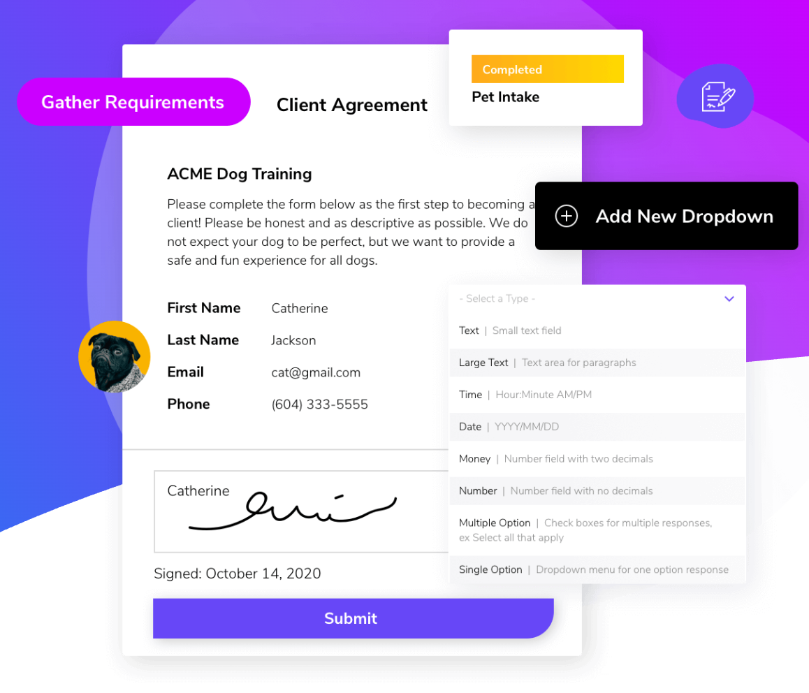 Pawfinity's clean, fast, and intuitive interface improves efficiency in your grooming salon, kennel, boarding facility, dog daycare, or pet sitting business while reducing the overhead associated with the organization and use of client information.
