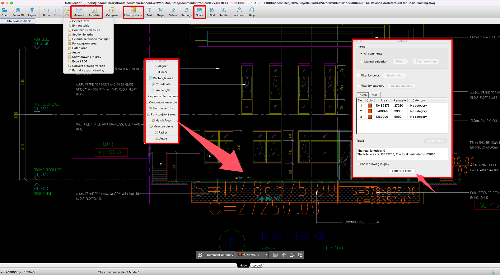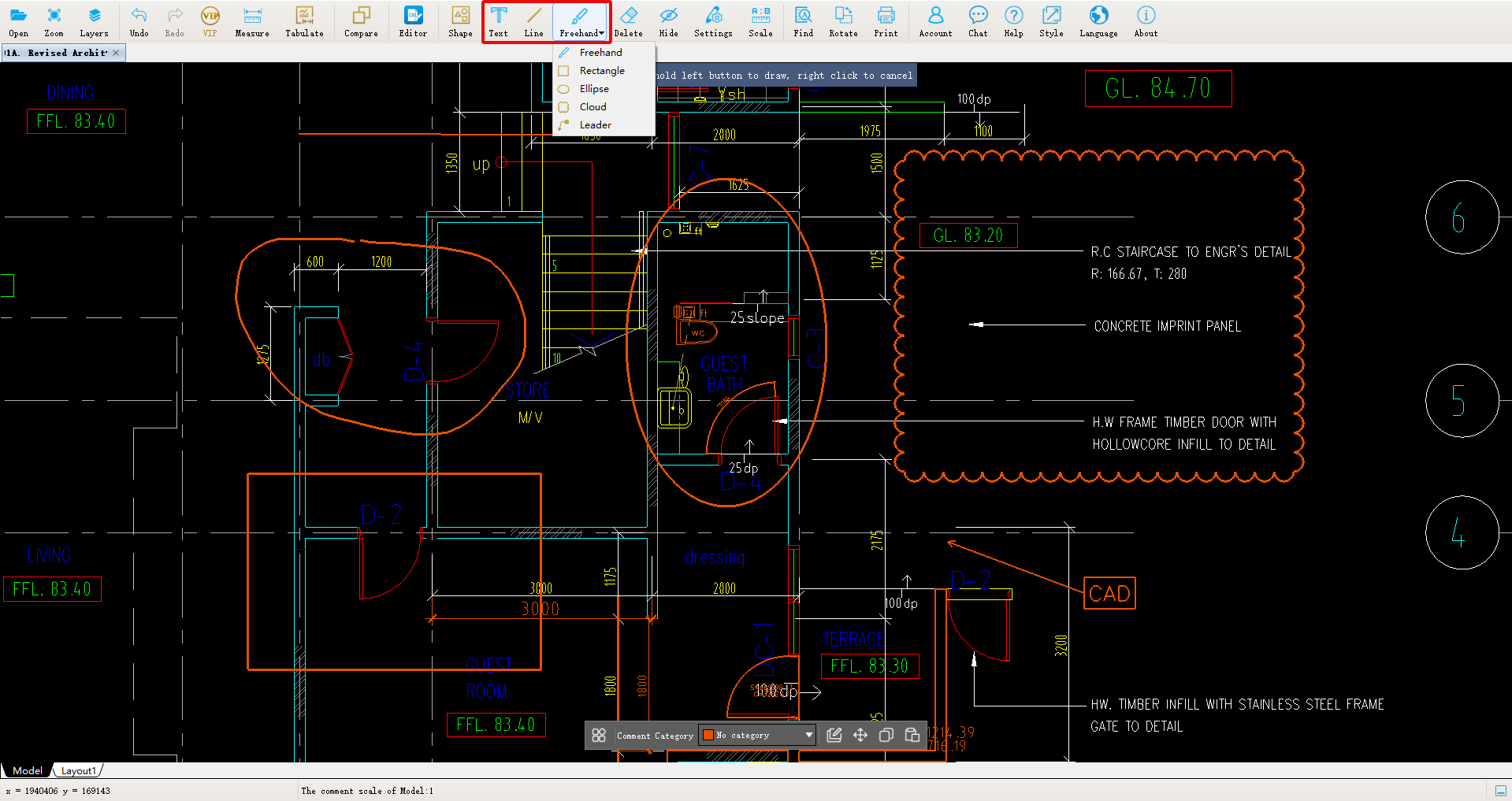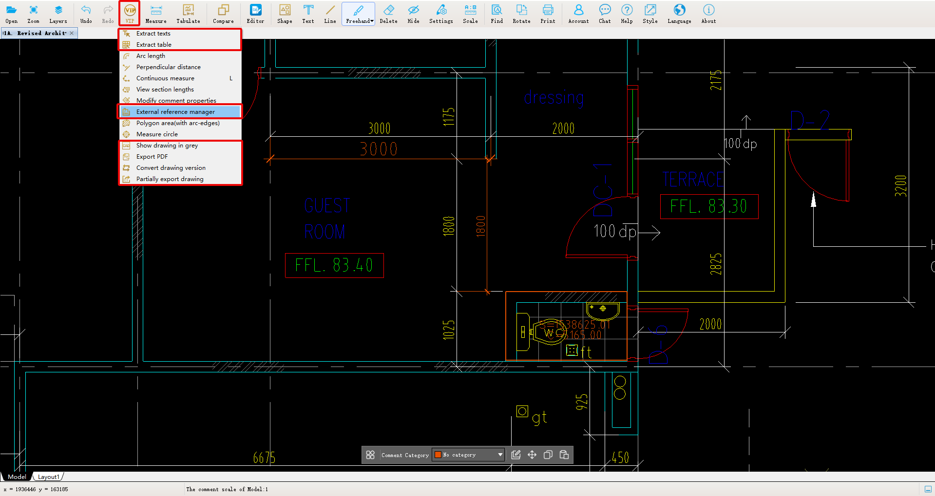 As a simple, lightweight, and powerful tool for viewing and measuring CAD drawing, CAD Reader supports *.dwg/*.dxf files and is available to add text, line, coordinate, and many other types of comments on the drawing. CAD Reader also provides many measurement tools to get the length, area, and numbers of the entities. Furthermore, the drawings with annotations can be exported to share with others.