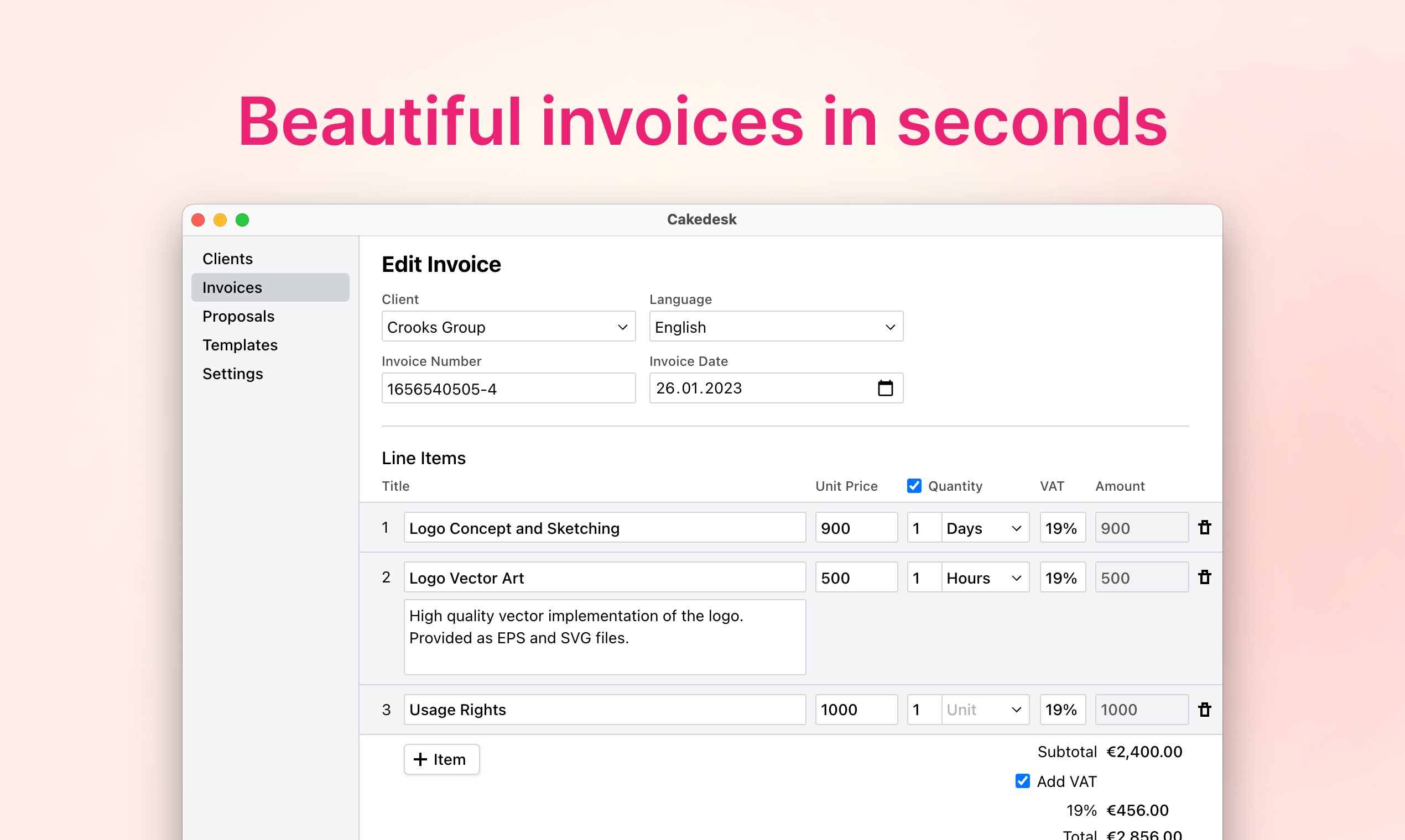 Cakedesk is a simple, clean and yet very flexible software to create elegant invoices and quotes. It even lets you create your own templates, which I especially like. And the icing on the cake is the absolutely great support I received from Max. Thanks a lot! Review collected by and hosted on G2.com.
