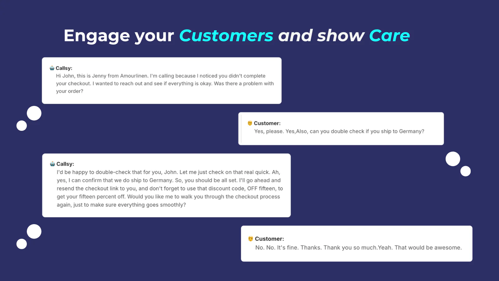 It's fully automated. There is not much to do. You click few buttons and it just does the job. So setup is really easy and requires no monitoring. It is also a money saver, as we used to use SMS for our abandoned checkouts, and now can just have it one place at fraction of cost. Review collected by and hosted on G2.com.