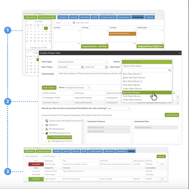 Effective Scheduling and Data Call Management, Secure Document Management for Proposal Teams, Streamlined Color Team Reviews, and Powerful Proposal Repository Tool