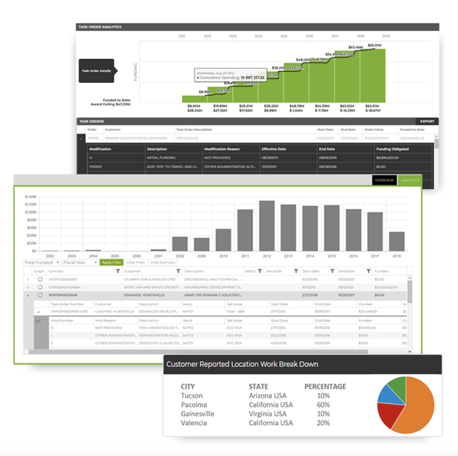 Industry Leading Analytics Designed for Capture, Contract Vehicle Analytics, Incumbent Contractor Performance, and Incumbent Contractor Location Work Share Analytics