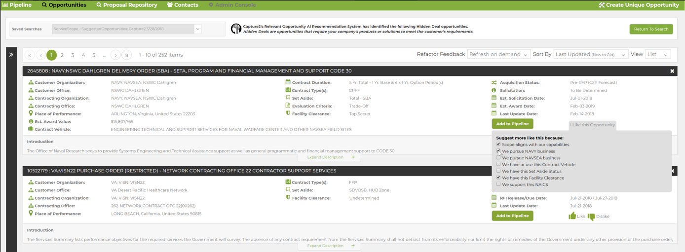 Capture2Proposal Demo - Relevant Opportunity Artificial Intelligence Recommendation System