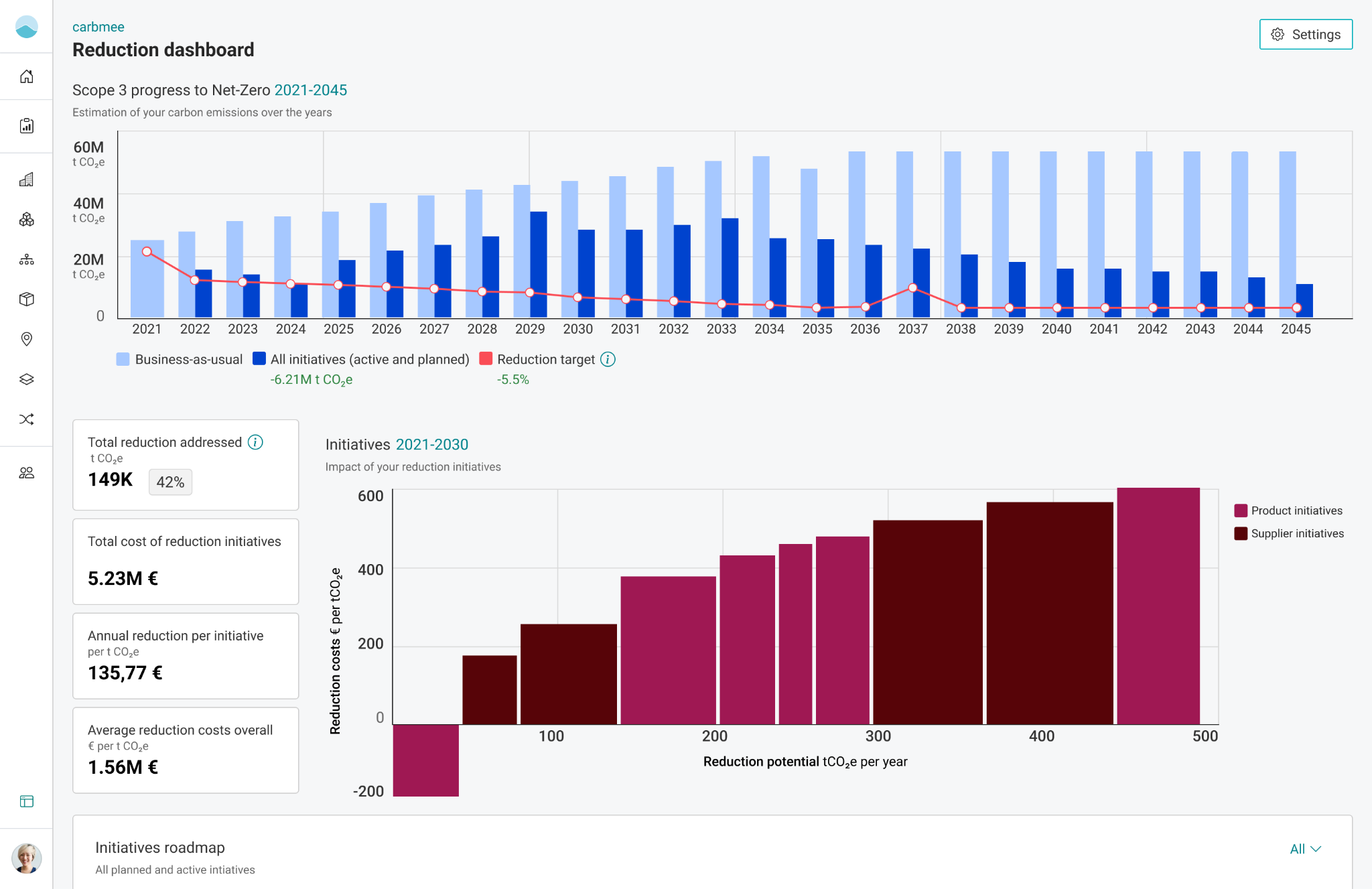 This software solution focuses on creating a resilient, low-carbon value chain, enabling businesses to implement long-term strategies that align with sustainability goals. By leveraging advanced automation, supplier collaboration and the most granular data doundation, Carbmee EIS provides rapid insights that empower organizations to make informed decisions regarding their environmental impact.