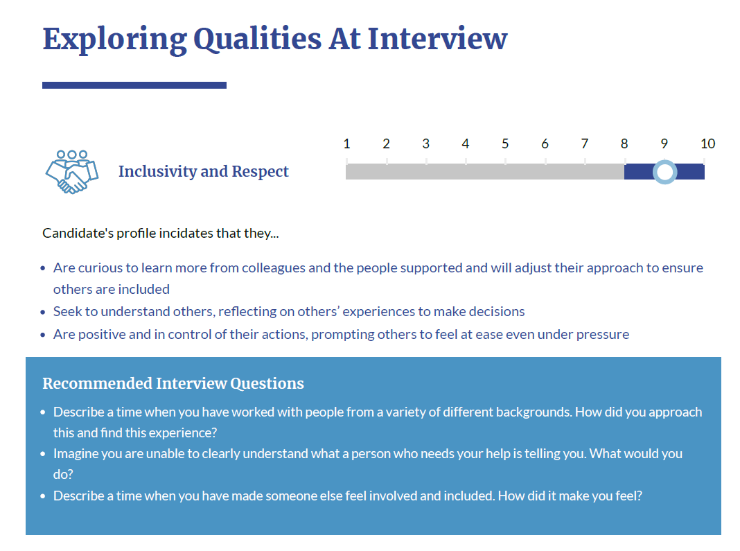The service from Care Character, Damien in particular, has been second to none. We use the assessment after a pre-screen call to decide whether we will progress to the interview stage. If the outcomes have been close after the interview process, it can also be used to determine whether to hire. In the last year, we have seen an increase in the number of offers of employment we issue and a reduction in the number of interviews. This saves time for interviewing, and we still get a better outcome. We are also seeing overall better retention figures.