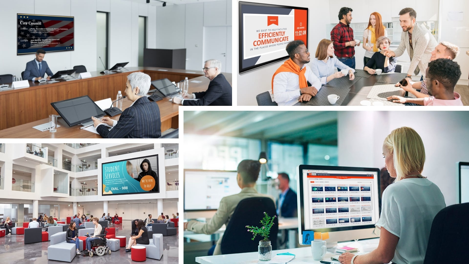 - Dual-Purpose Displays: Turn collaboration screens, like Microsoft Teams Rooms, into active communication touchpoints that display branded announcements when not in use for meetings.
