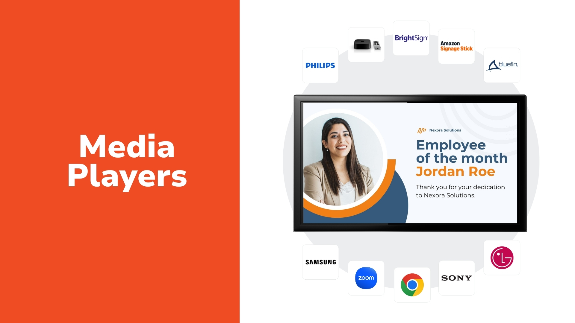 - Media Player Flexibility: We pair the best CMS with the best hardware, offering native support for BrightSign, Apple TV, Amazon Signage Stick, Mersive Solstice, and more.