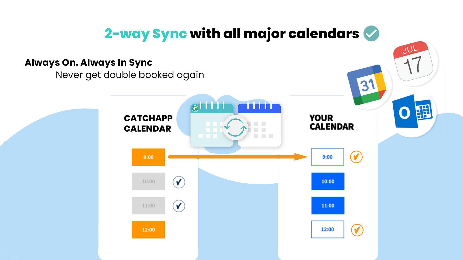 Take back control of your time around appointments with CatchApp's intuitive buffer features enabling you to have full control of your time while maximizing productivity.