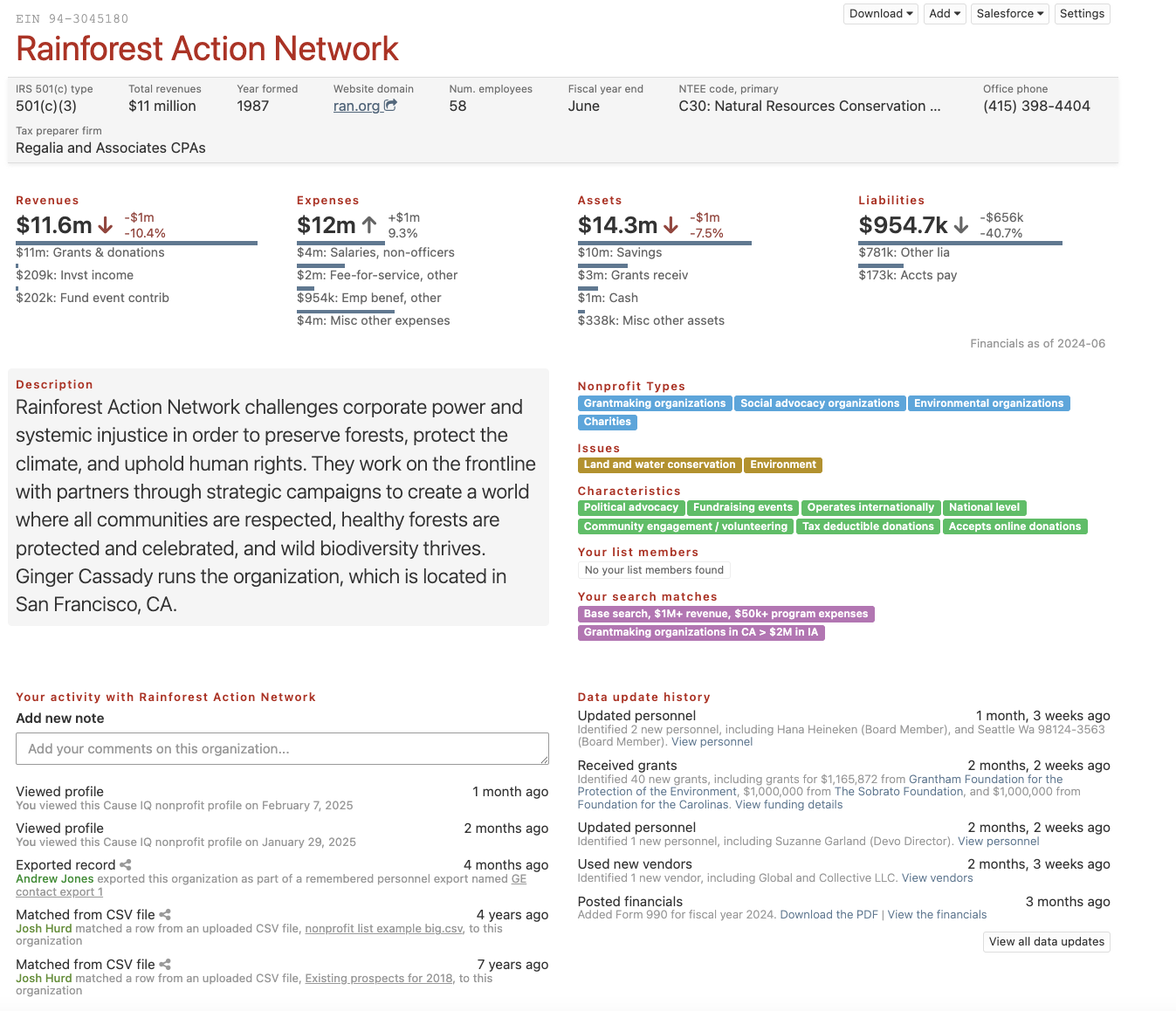 Cause IQ brings together a massive amount of public nonprofit data into one place, making it incredibly efficient to research and qualify organizations. I especially appreciate the ability to sync data directly to Salesforce, which saves my team time and ensures we’re working with up-to-date info. The platform is rich with detail—990s, key contacts, financials, and more. It’s a go-to resource in our workflow.