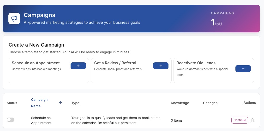 The platform integrates directly with GoHighLevel for calendar synchronization and contact management. Multiple Ai-driven campaigns can operate simultaneously across different stages of the funnel, allowing conversations to support both revenue capture and revenue recovery within a single system.
