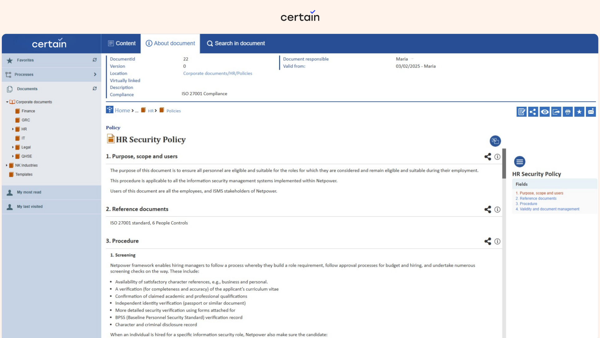 Certain QMS is developed by Norwegian software company Netpower, and is available both as a cloud service and on-premise. The system is suitable for both small teams and complex organisations that want a complete, user-friendly QMS designed for daily use.