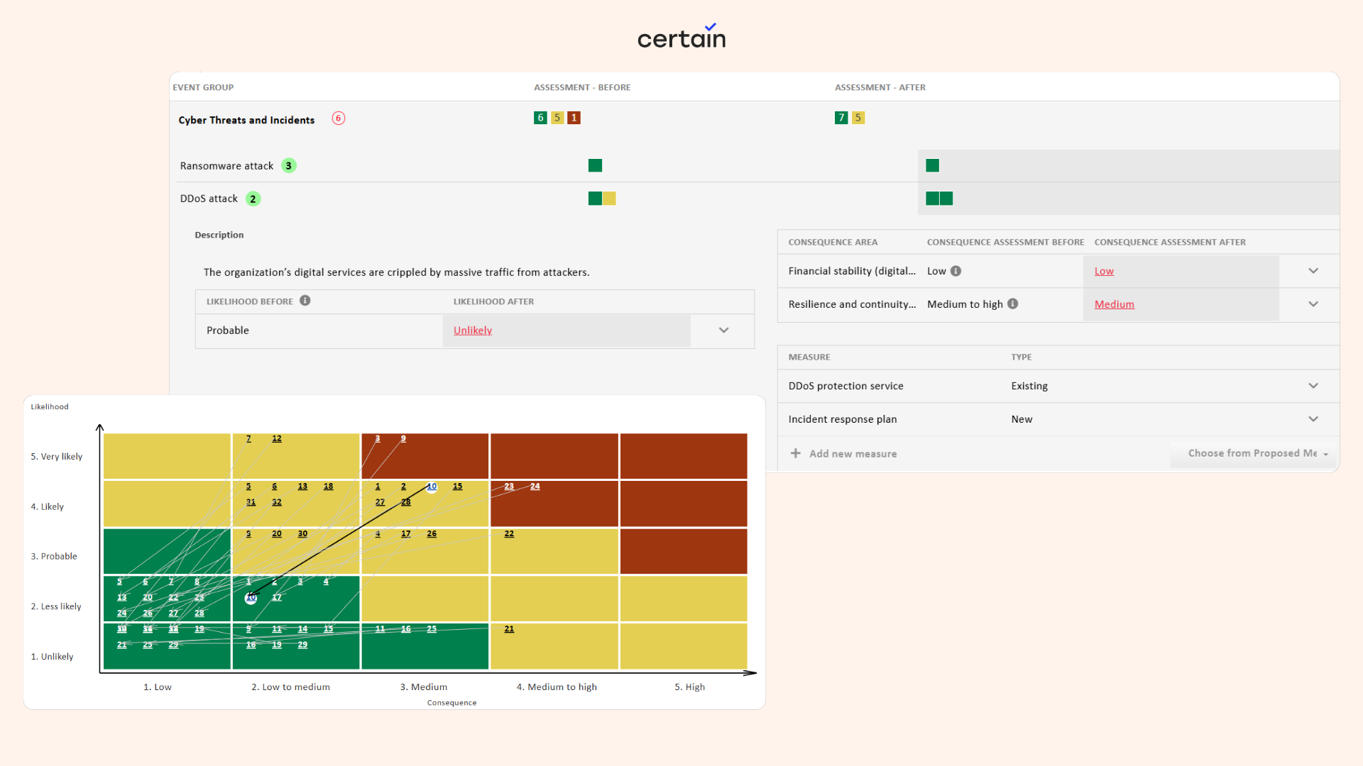• Risk management: Conduct risk assessments using methods such as likelihood/consequence matrices, and link risks to relevant tasks, processes or documents.