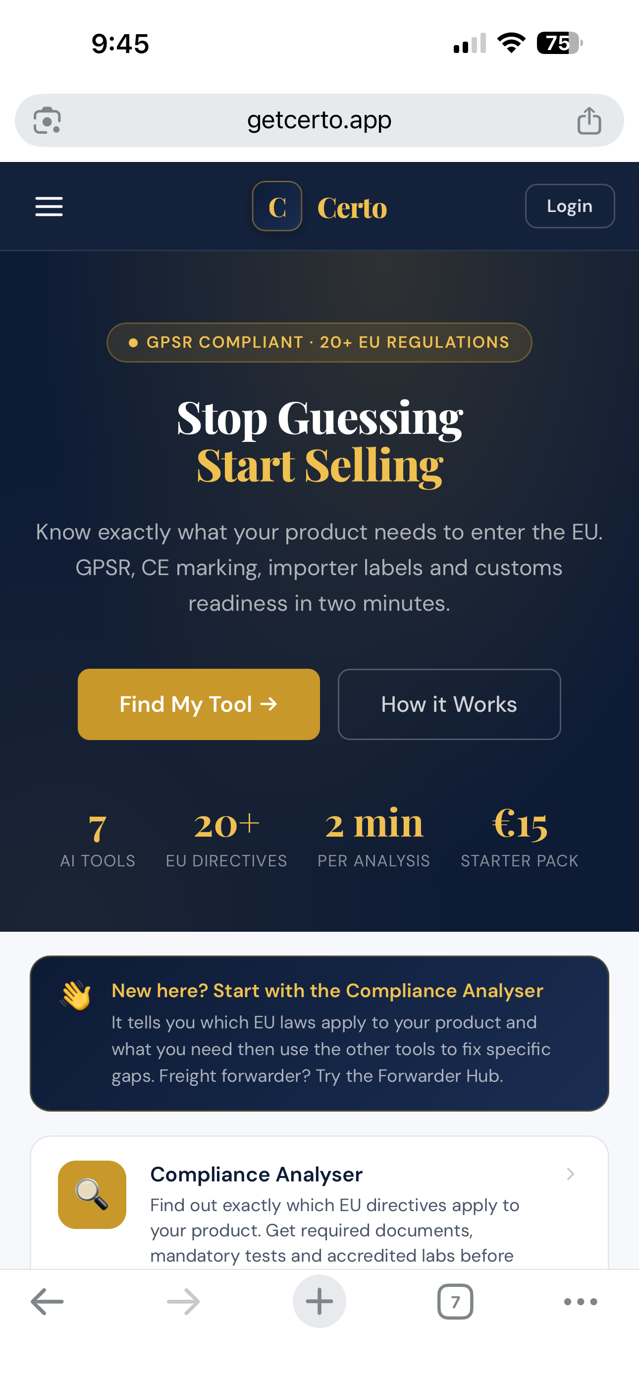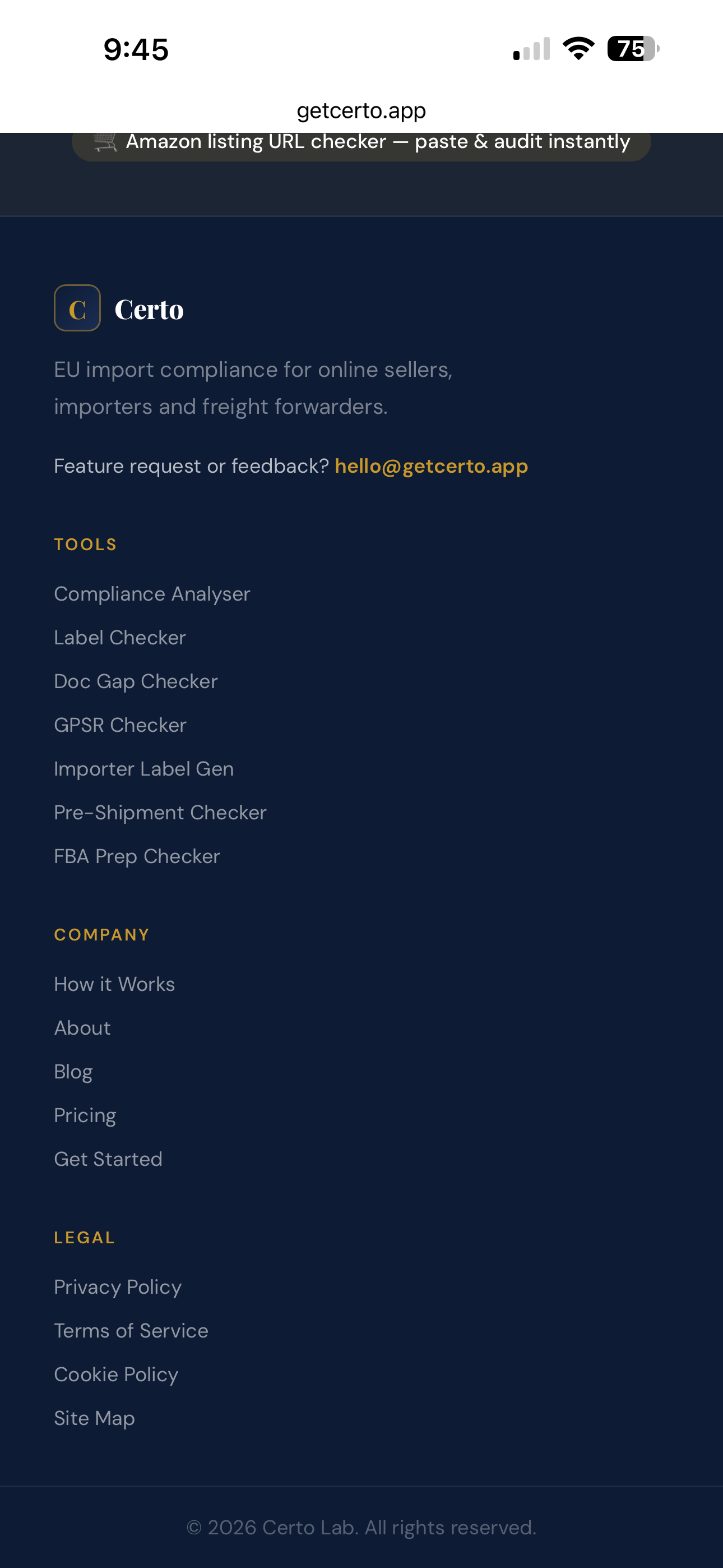 Certo instantly identifies which EU directives apply to any product and generates compliant importer label text in both English and German. The pre-shipment checker gives a clear PASS/FAIL verdict before the shipment leaves the factory, saving hours of manual research. Review collected by and hosted on G2.com.
