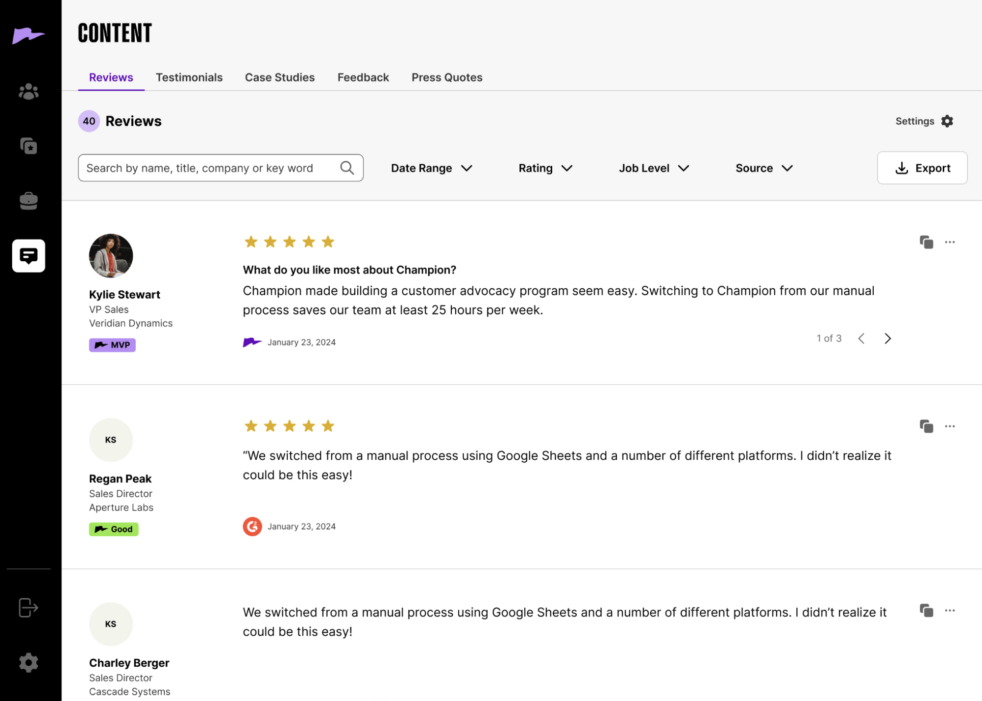 There are not enough reviews of Champion for G2 to provide buying insight. Below are some alternatives with more reviews: