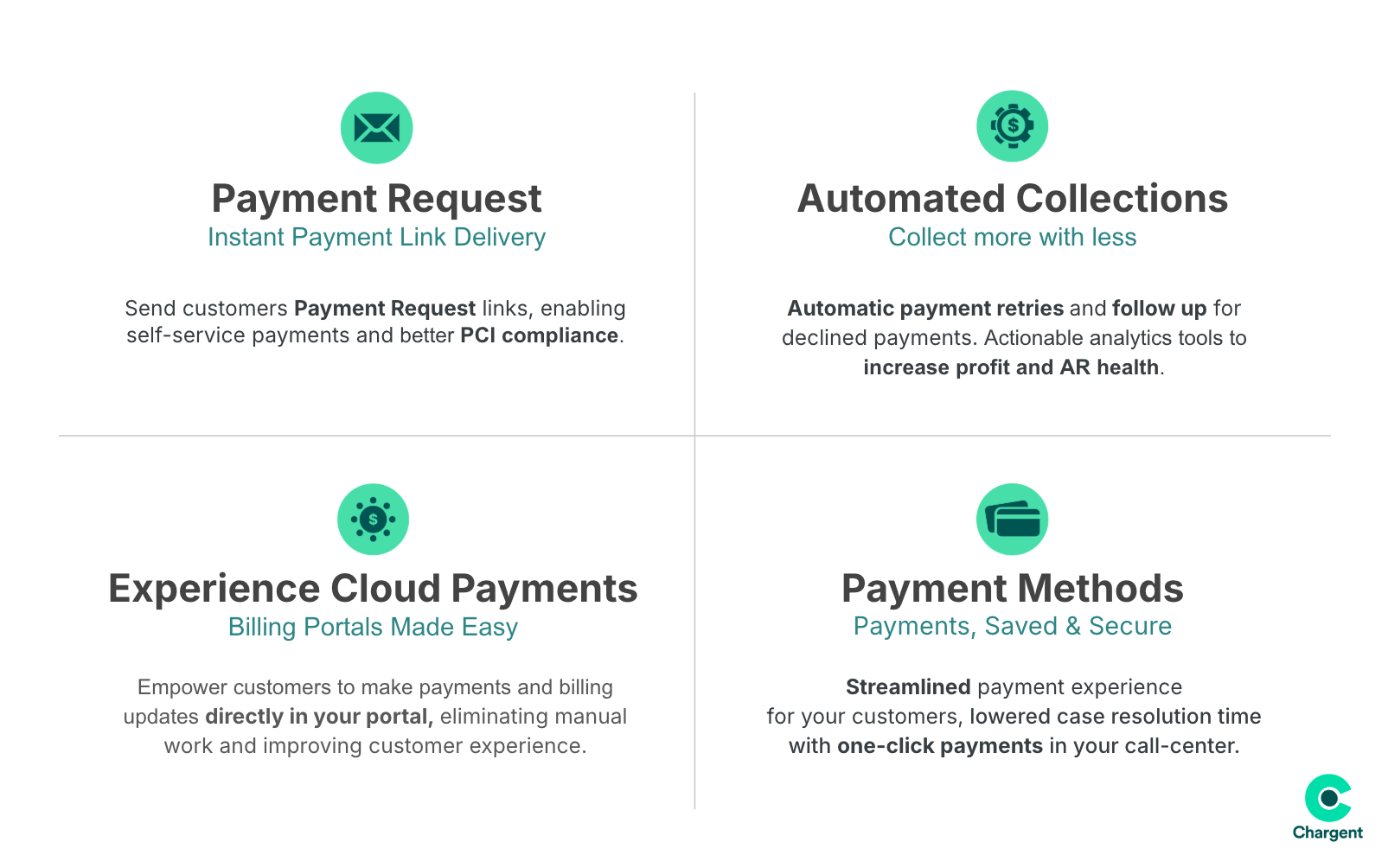Chargent is a comprehensive payment solution designed specifically for Salesforce users, facilitating credit card, ACH, and subscription billing processes. This software seamlessly integrates into the Salesforce ecosystem, allowing businesses to manage their payment transactions directly within the platform. By utilizing Chargent, organizations can streamline their revenue capture, reduce manual data entry, and enhance their order and invoicing workflows, ultimately leading to improved operational efficiency.