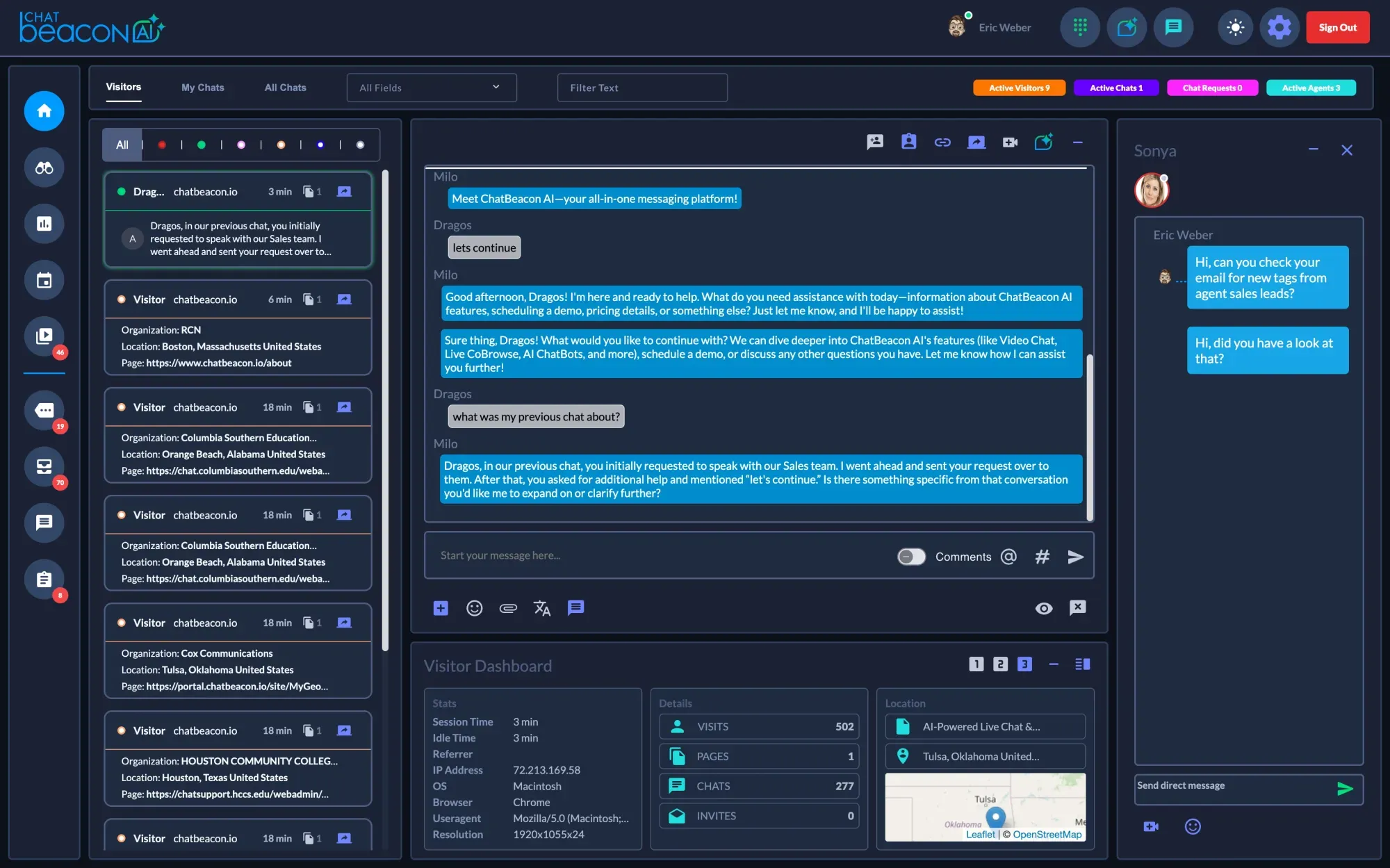 ChatBeacon AI is a powerful live chat and AI chatbot platform designed to increase customer engagement, improve support, and drive more sales. It combines real-time agent chat, screen sharing, AI automation, and visitor insights in one sleek, secure solution.