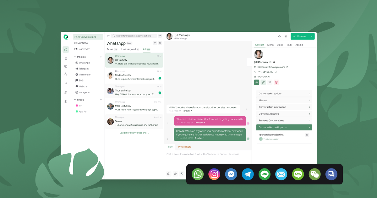 One of chatlyn's key features is its omnichannel inbox, which allows you to manage all customer interactions from one central location. This includes email, webchat, WhatsApp, SMS, Instagram, Facebook Messenger, Telegram and more. Get AI-generated reply suggestions for faster responses. Improve your message drafts with AI-generated recommendations while composing messages. Summarize conversations in a click.