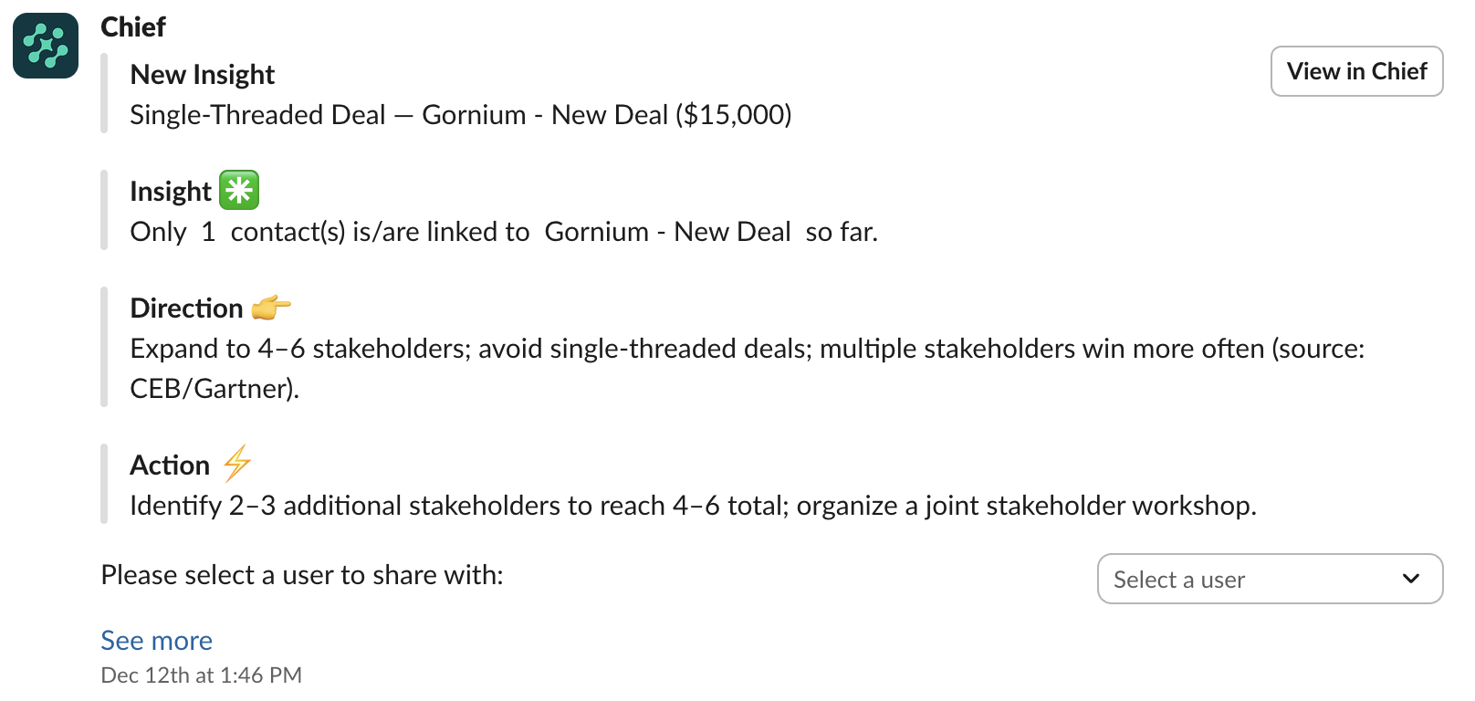 With Clari, sales leaders get instant insight about their forecast and deal progress, with a direct line to reps to coach and align on next steps to close.