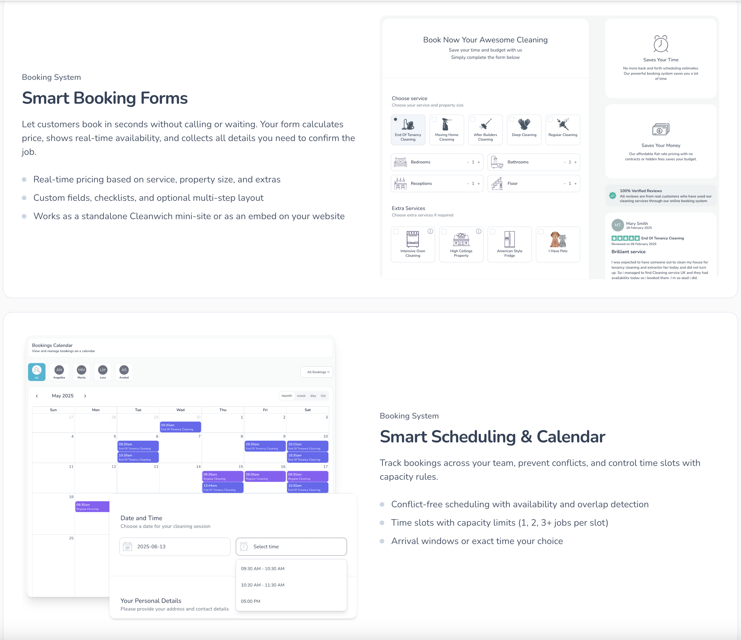 Online booking and scheduling software for maid service and cleaning businesses. Easy to use and super simple to schedule your maids, automate email/text reminders, and more. We’re the gold standard if you’re looking for a calendar system to manage your maid service / cleaning company.